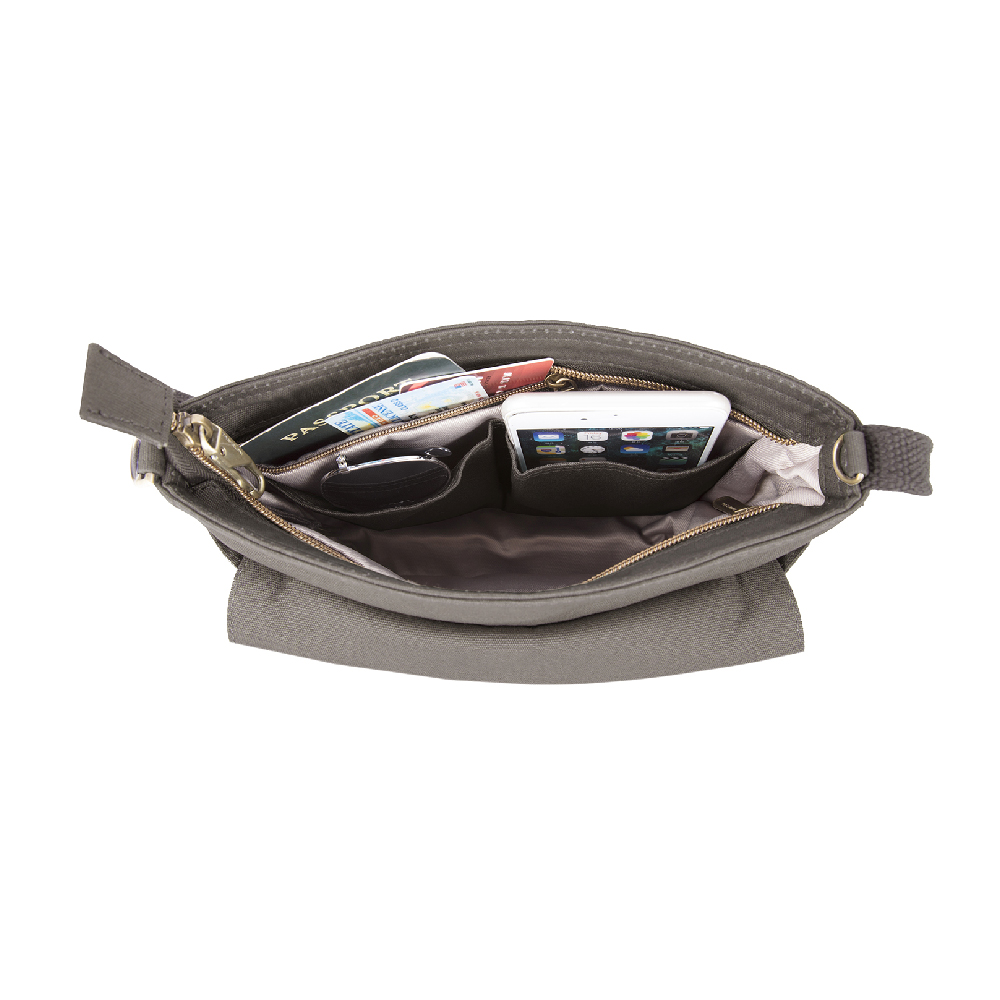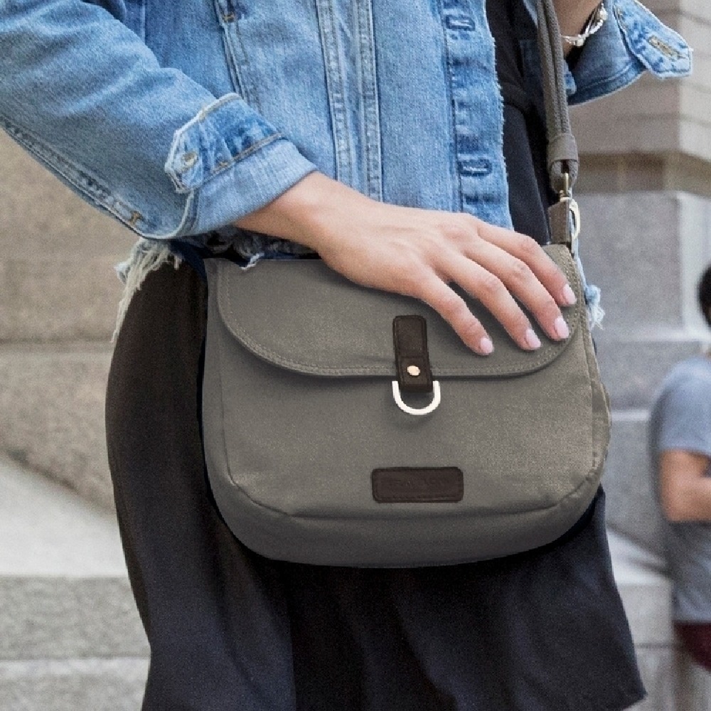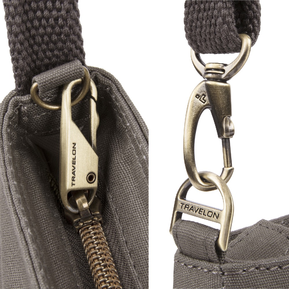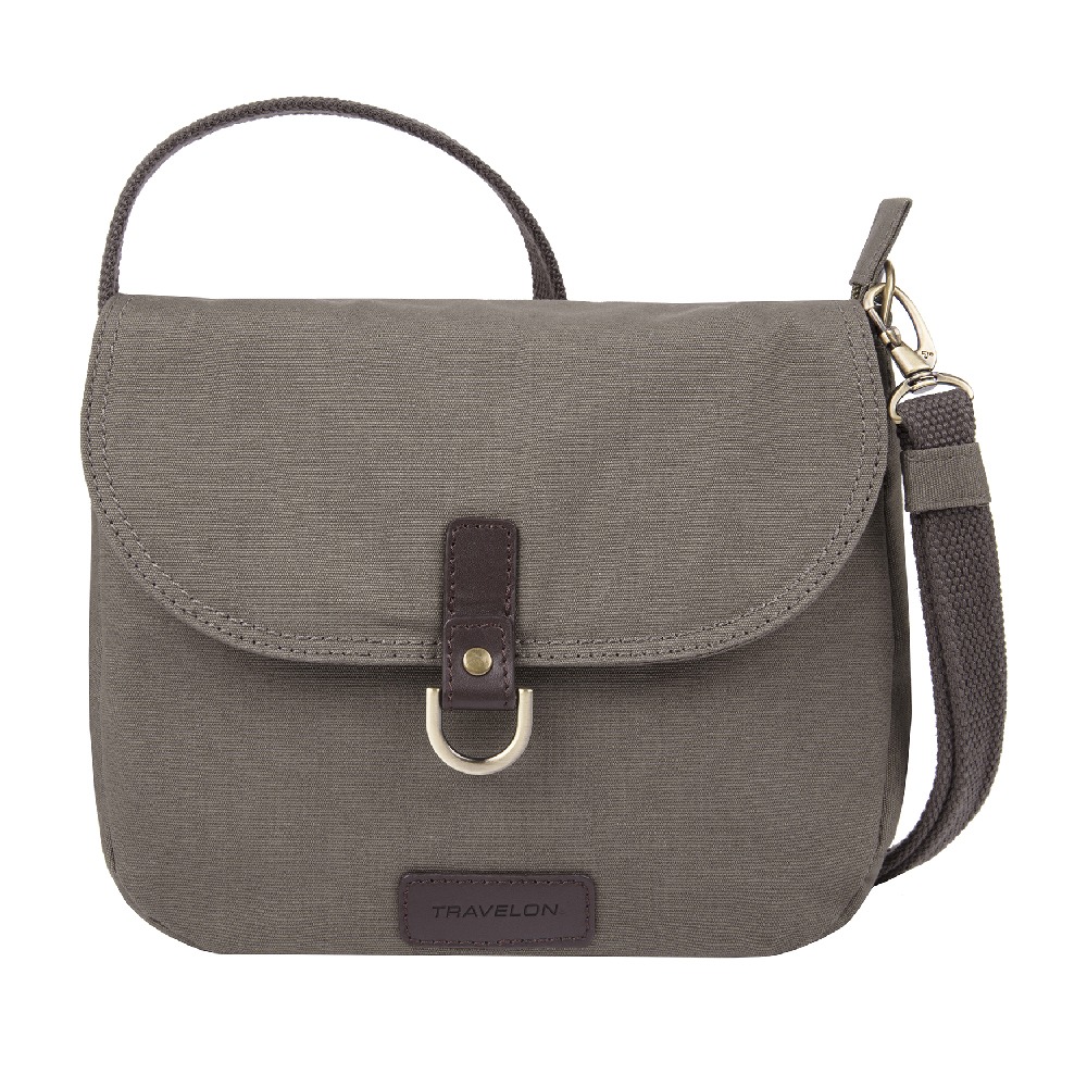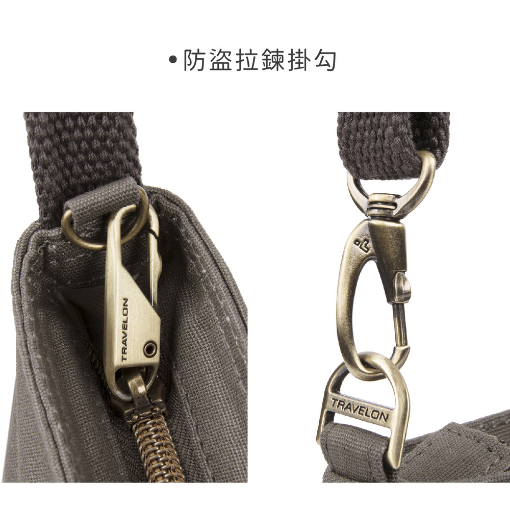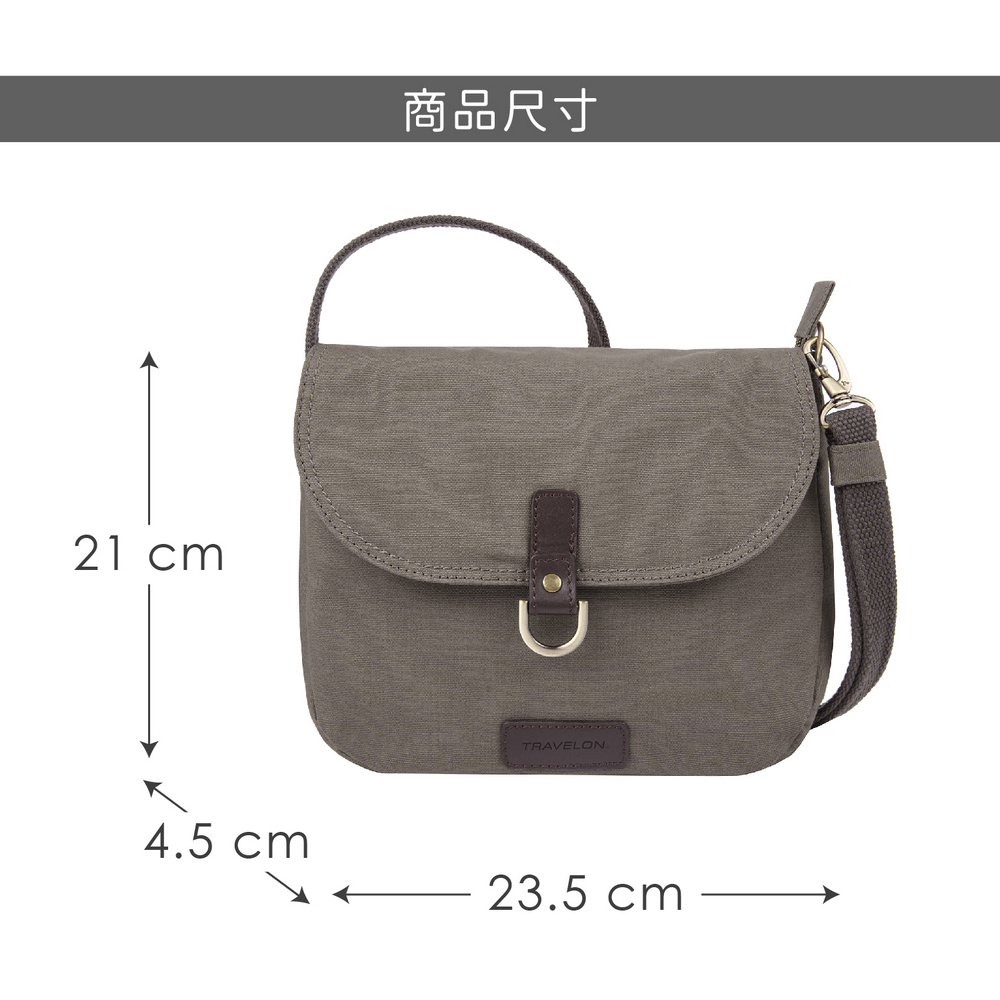 美國 TRAVELON - RFID三層防盜馬鞍包(岩灰) / 側背包 斜背包 背帶包 防割防搶