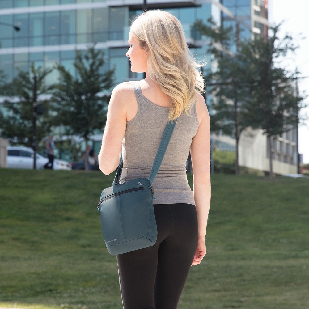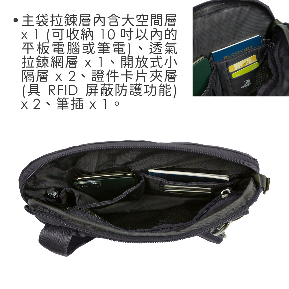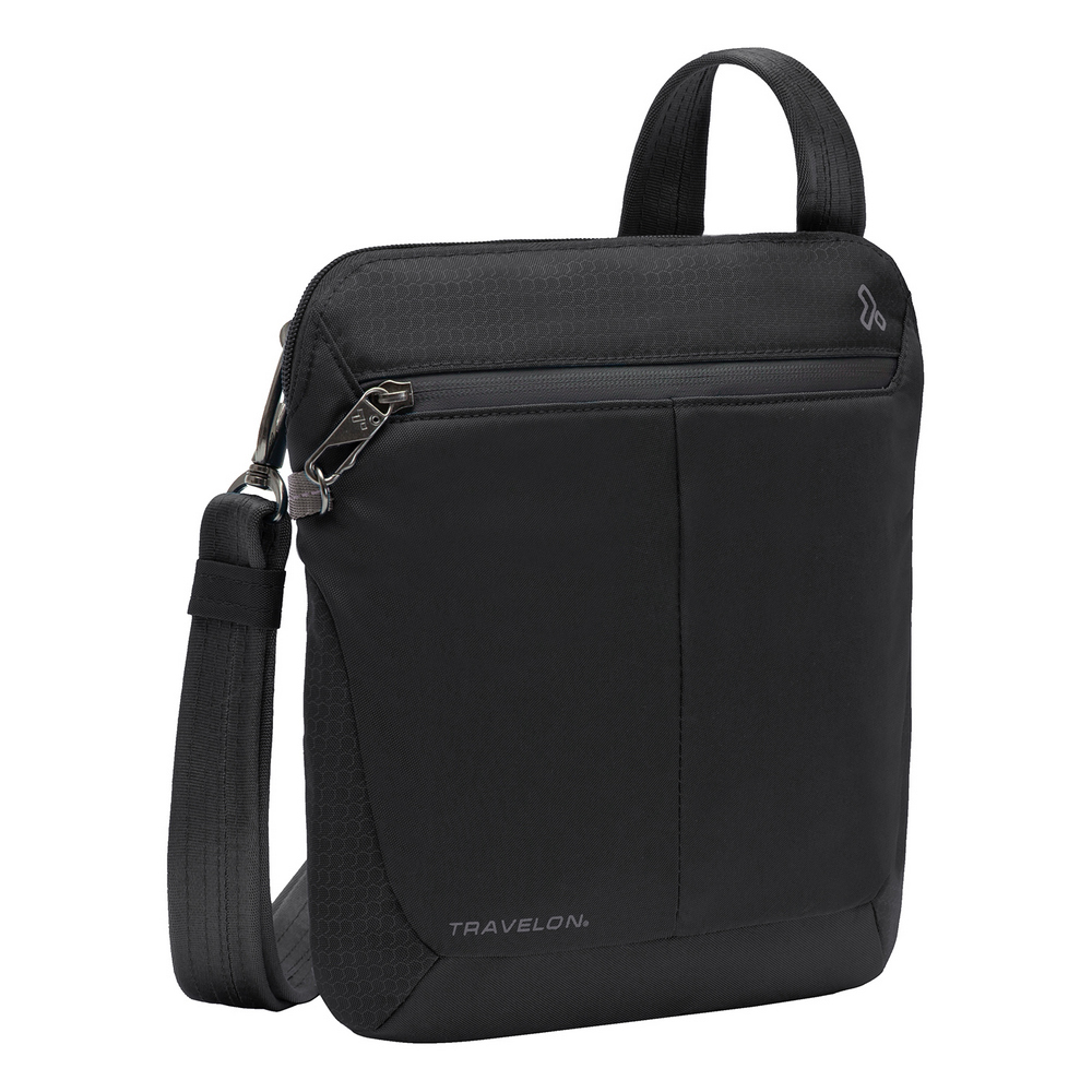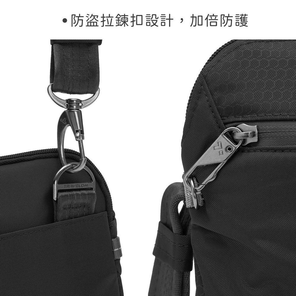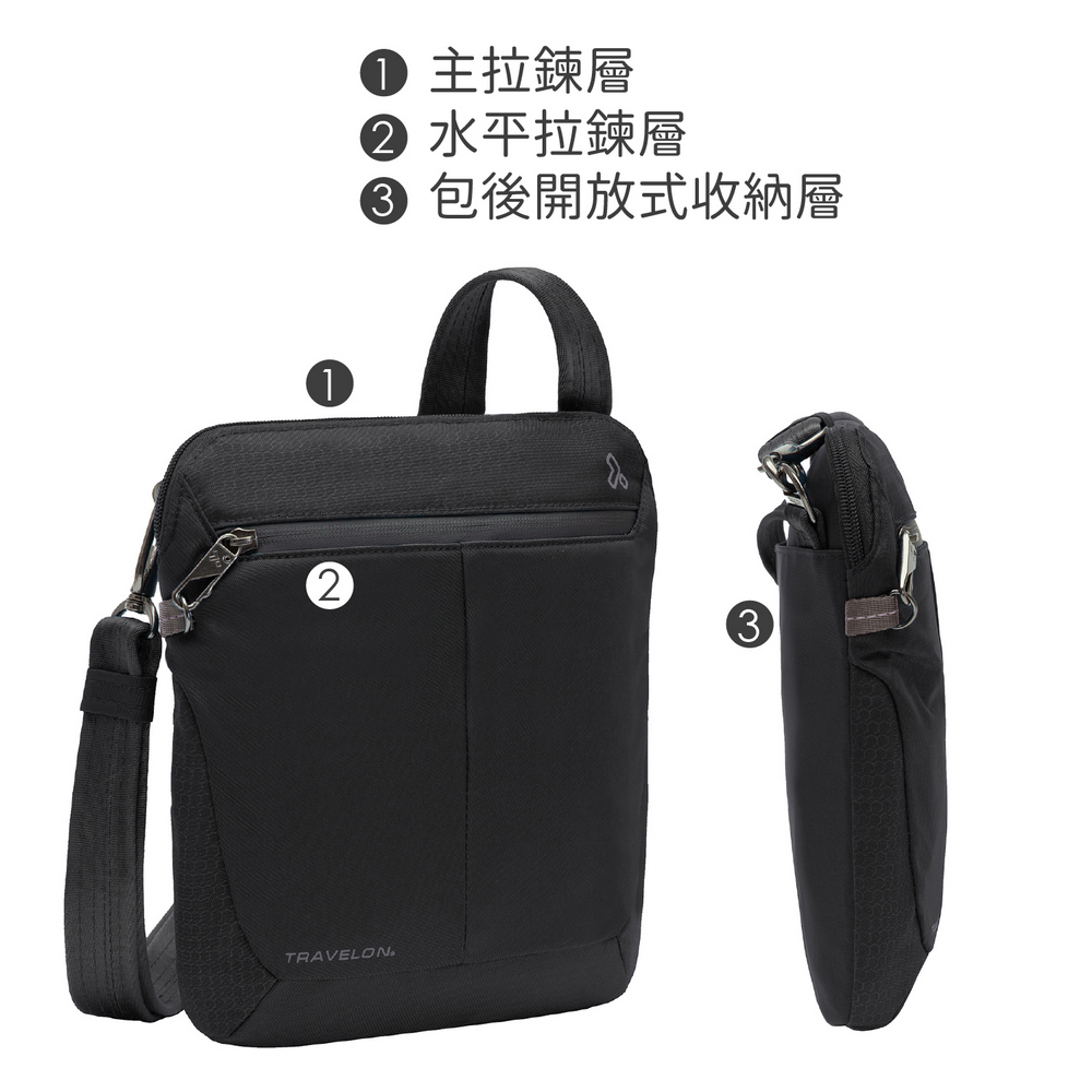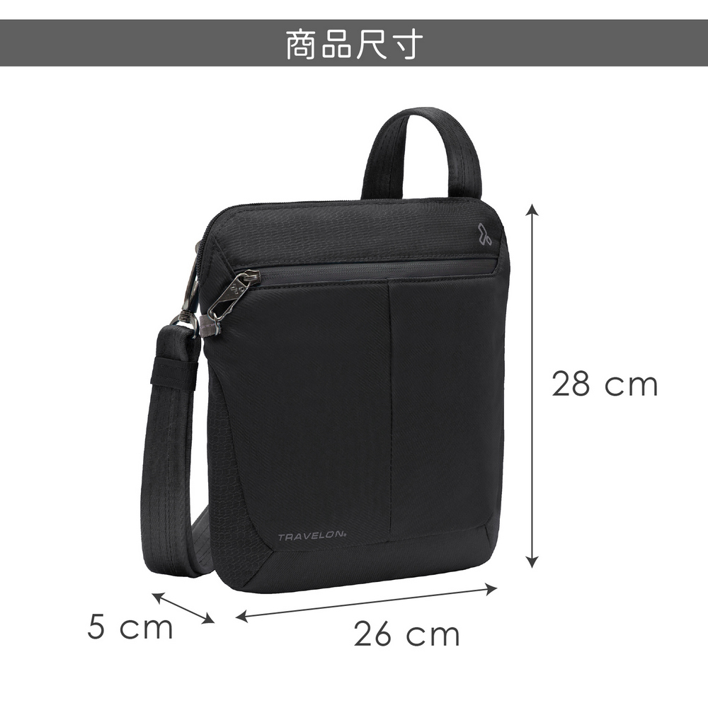 美國 TRAVELON - RFID方型防盜斜背包(黑) / 側背包 斜背包 背帶包 防割防搶