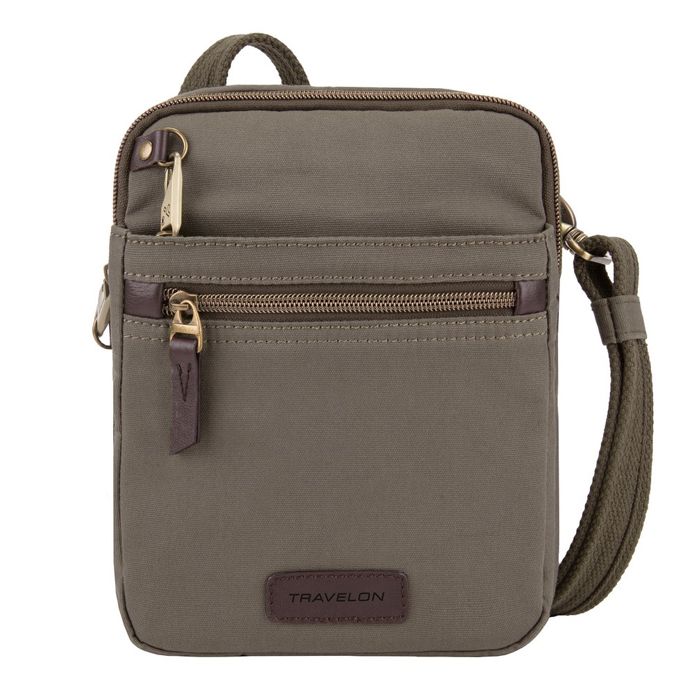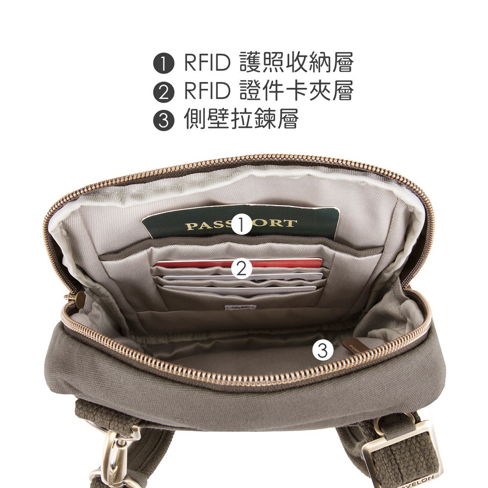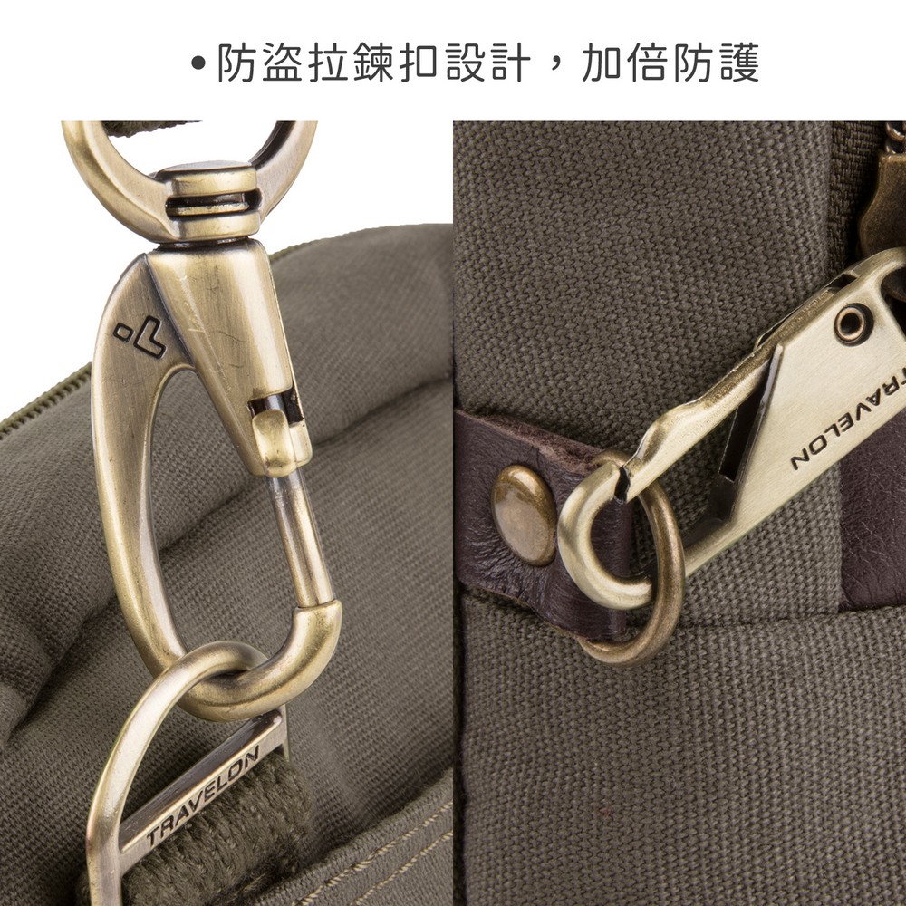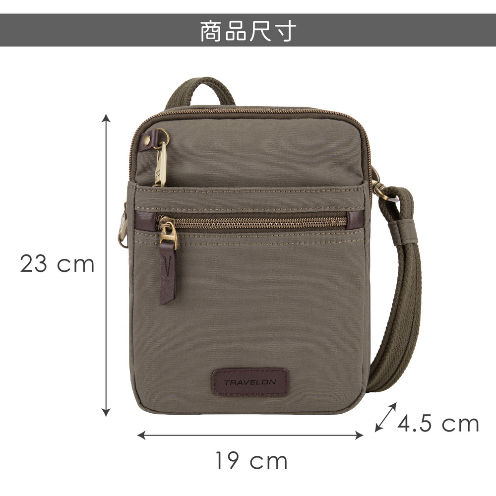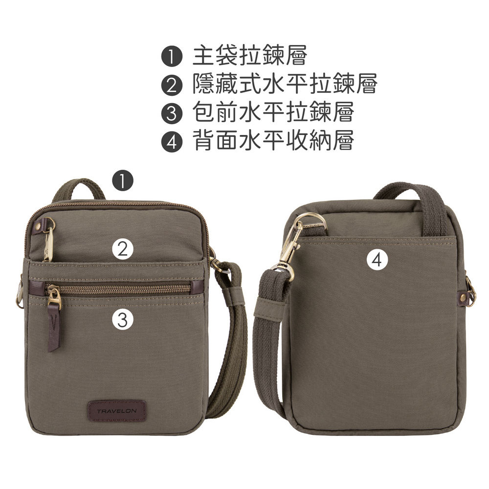 美國 TRAVELON - Courier帆布四層防盜斜背包(棕) / 側背包 斜背包 背帶包 防割防搶