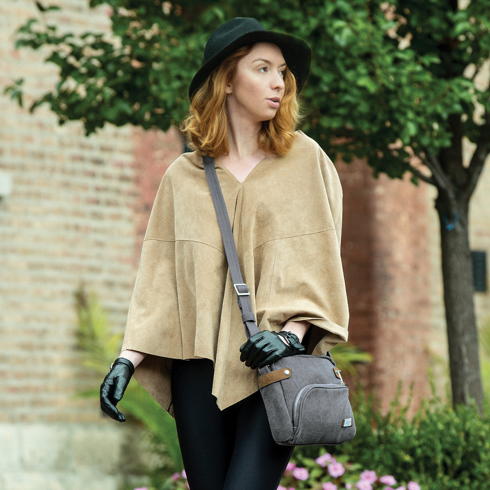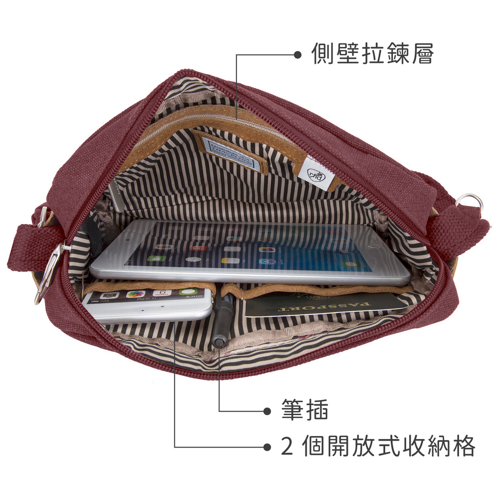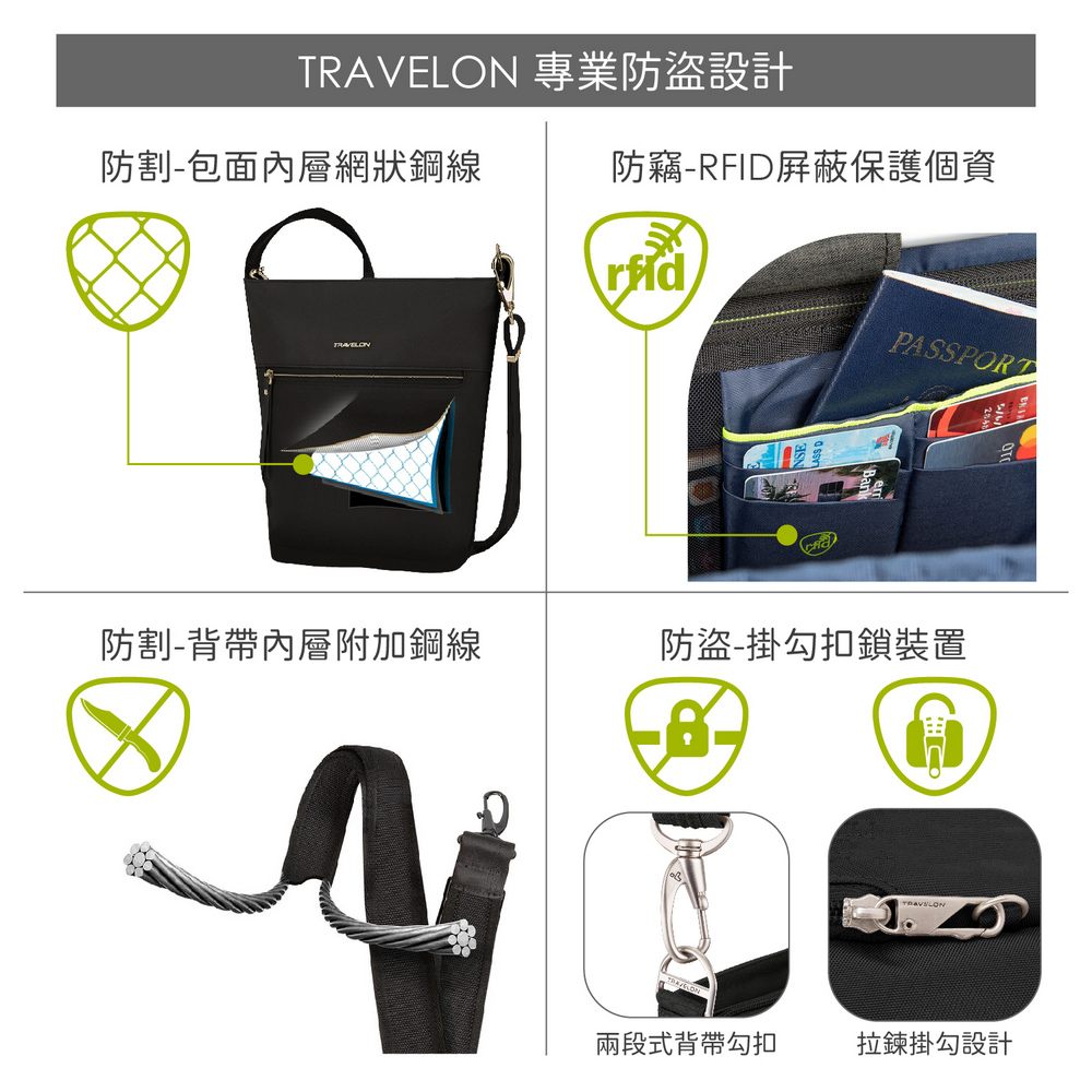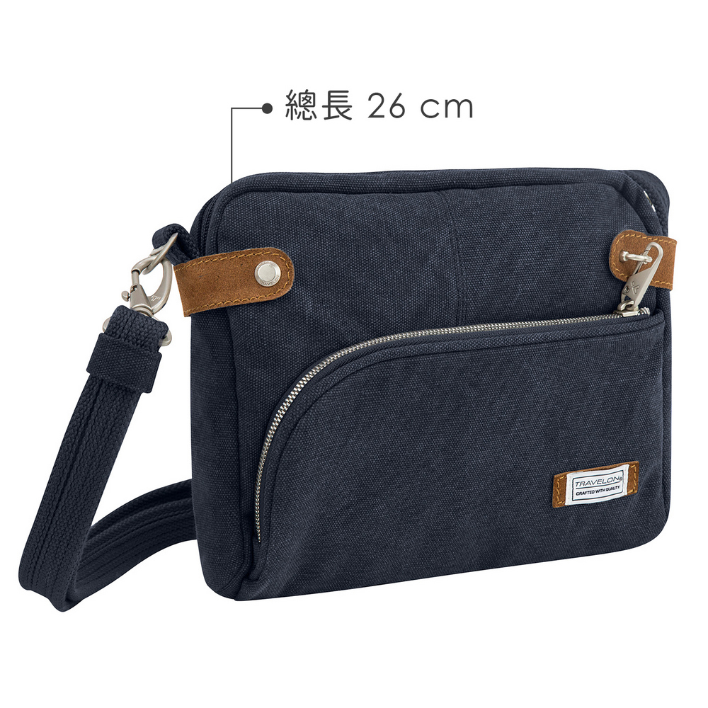 美國 TRAVELON - 三層弧型防盜斜背包(牛仔藍) / 側背包 斜背包 背帶包 防割防搶