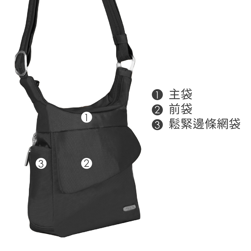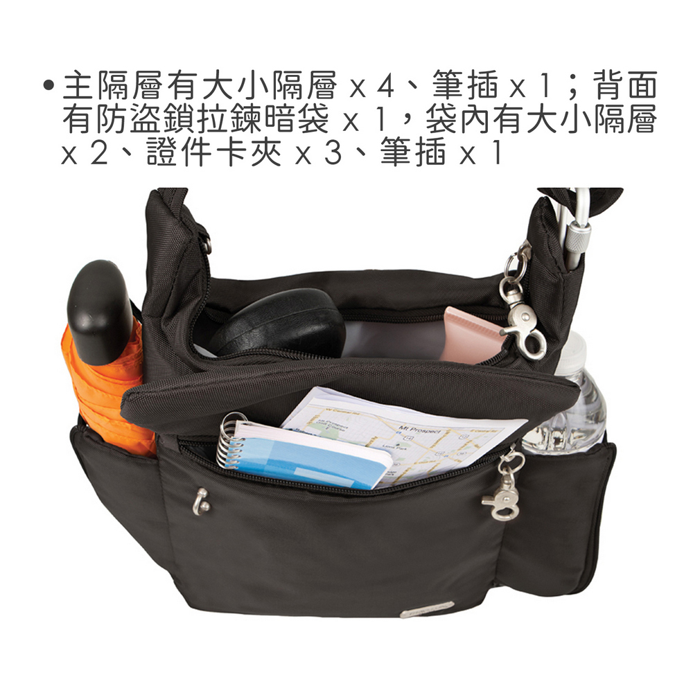 美國 TRAVELON - 加大側袋防盜兩用包(黑) / 側背包 斜背包 背帶包 防割防搶