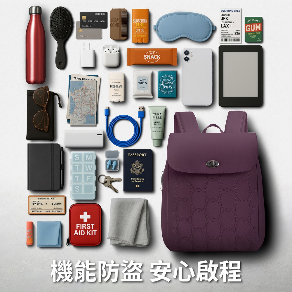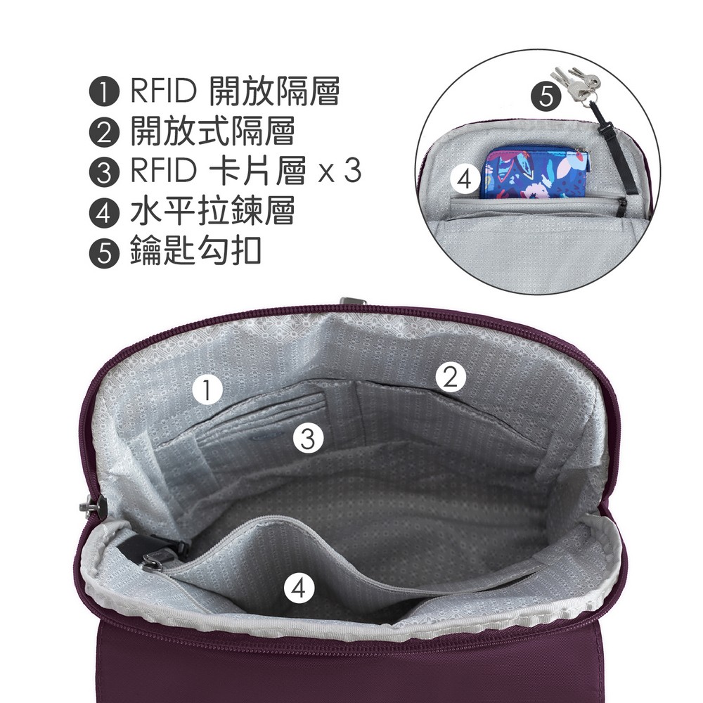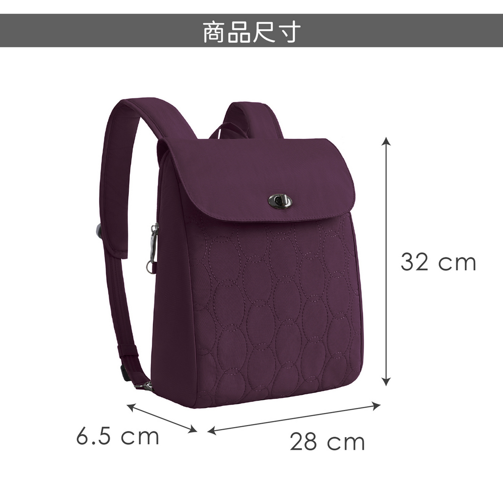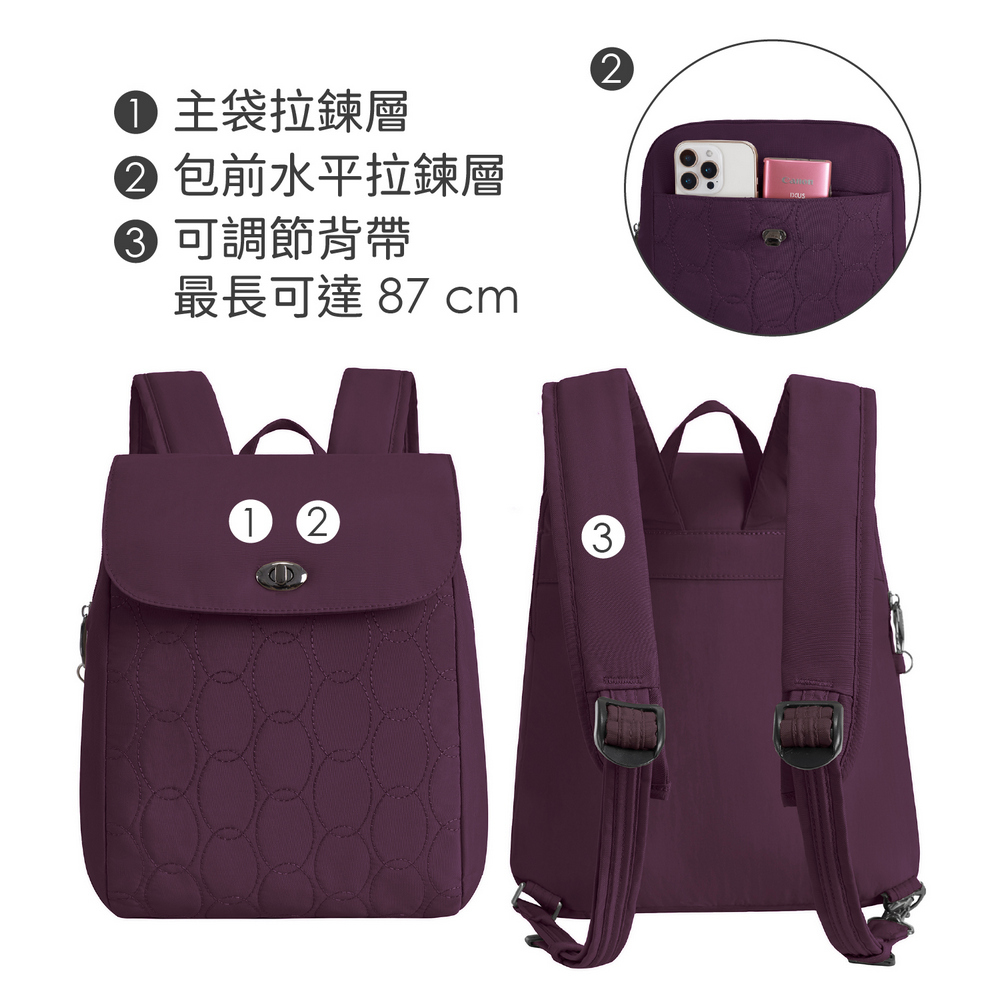 美國 TRAVELON - Runways雙層防盜後背包(黑莓紫) / RFID防盜包 防盜後背包