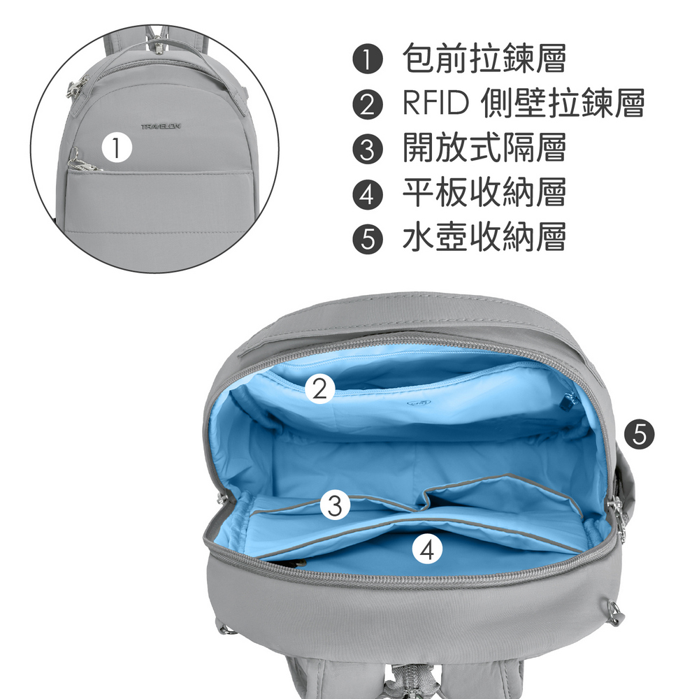 美國 TRAVELON - Roam雙層兩用防盜後背包(冰河灰) / 防盜斜背包 後背側背兩用