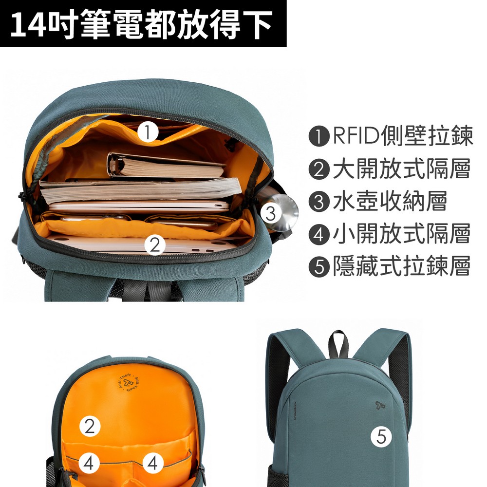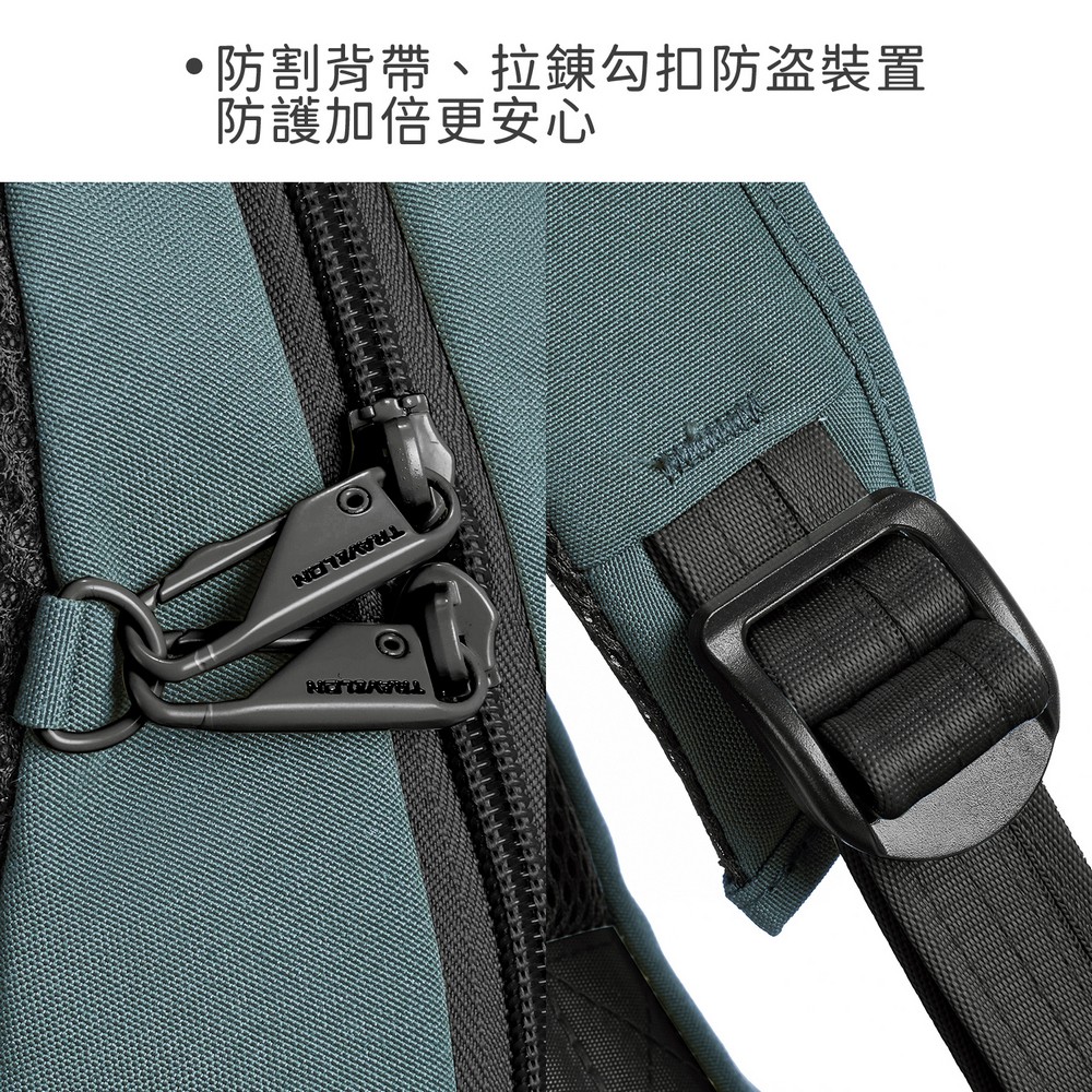 美國 TRAVELON - Voyages雙層防盜後背包(杜松青) / 防盜背包 旅行背包 旅行包 防割防搶包