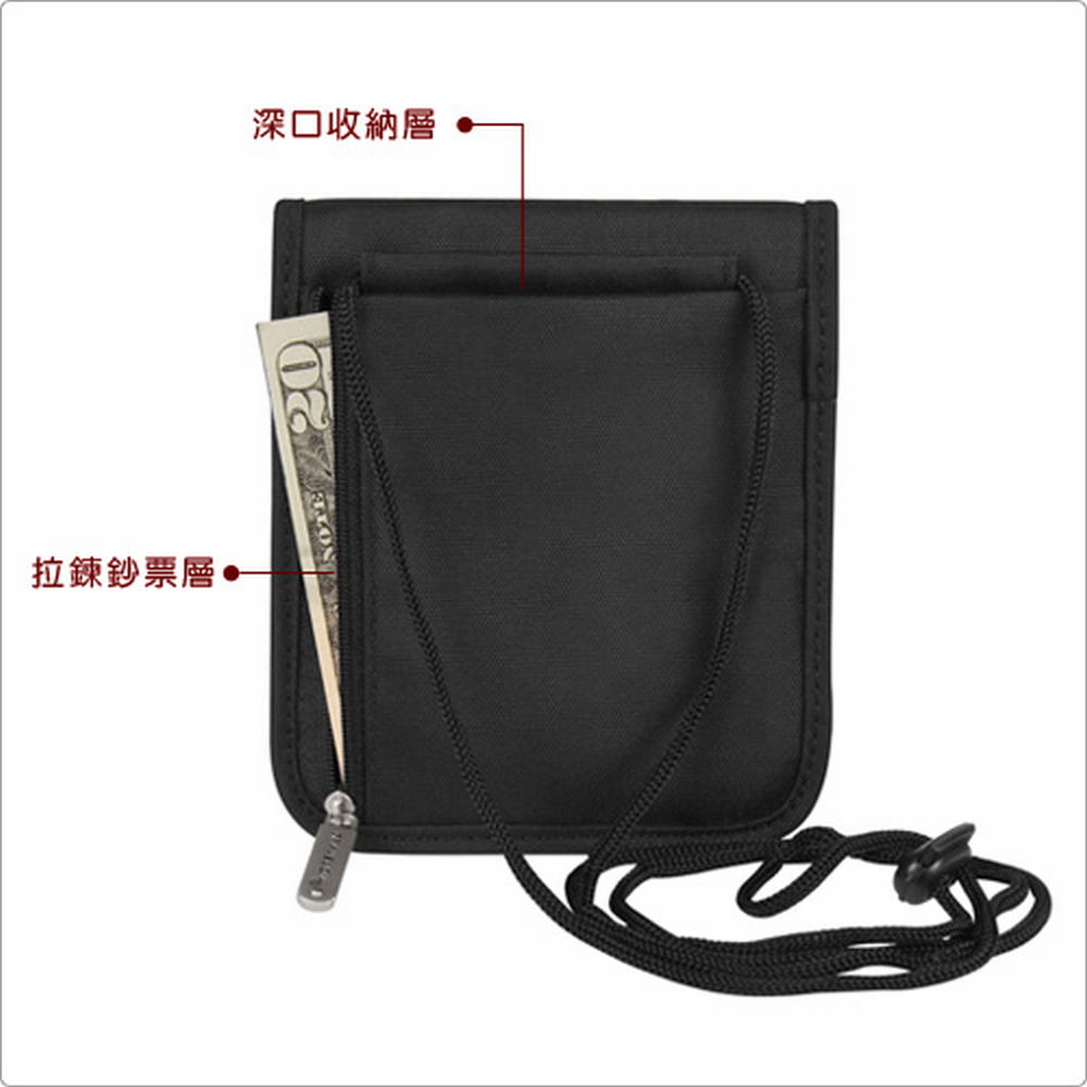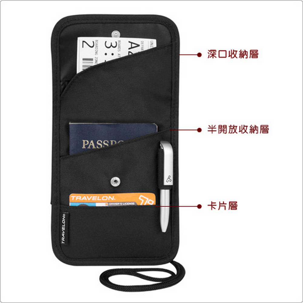 美國 TRAVELON - 扣式附筆隨身夾(黑) / 隨身包 貼身包 隱形包 防盜包 防搶包