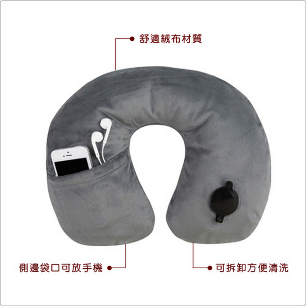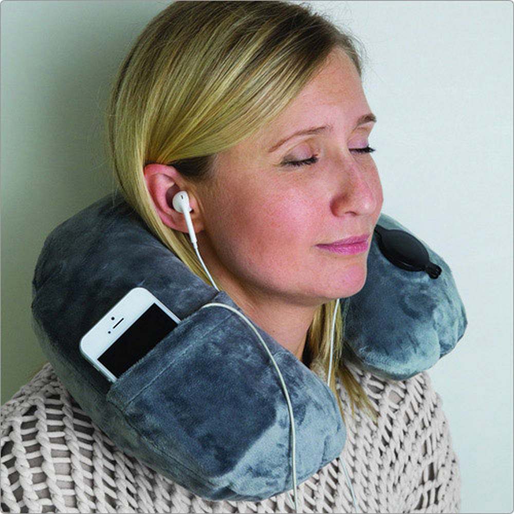 美國 TRAVELON - 絨布音樂護頸充氣枕(灰) / 午睡枕 飛機枕 旅行枕 護頸枕 U形枕