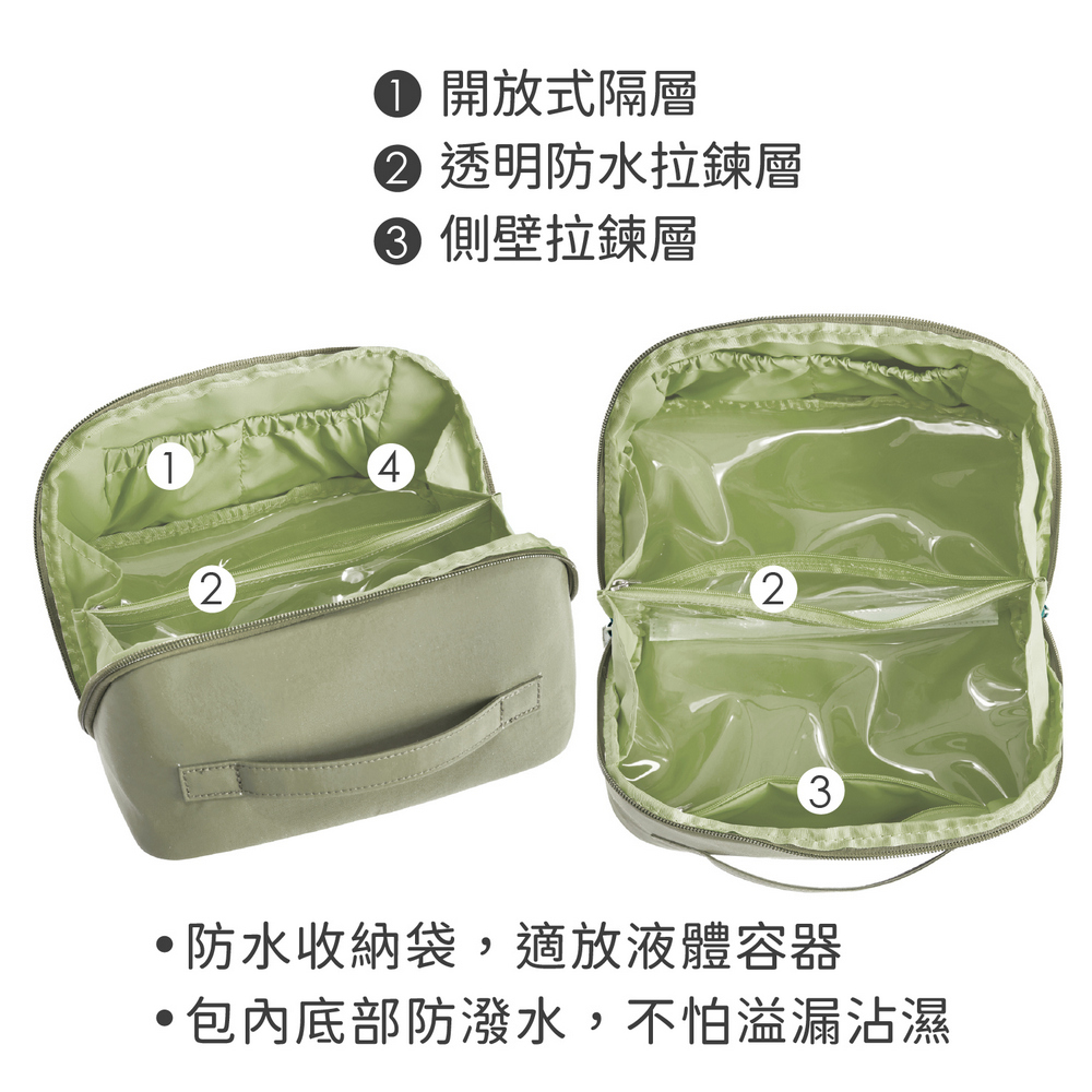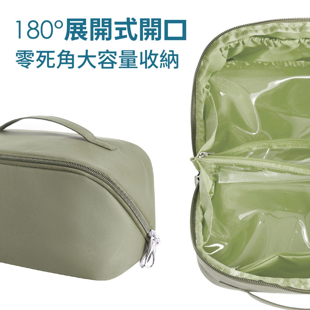 美國 TRAVELON - 180度展開式盥洗化妝包(抹茶綠) / 盥洗包 180度大開口 大容量化妝包