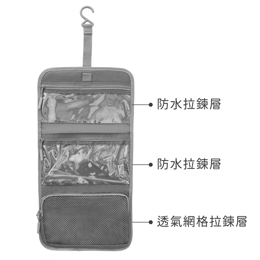 美國 TRAVELON - Pi掛式盥洗化妝包(石墨灰) / 化妝包 收納包 旅行小包 盥洗包