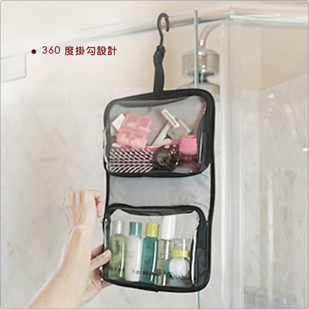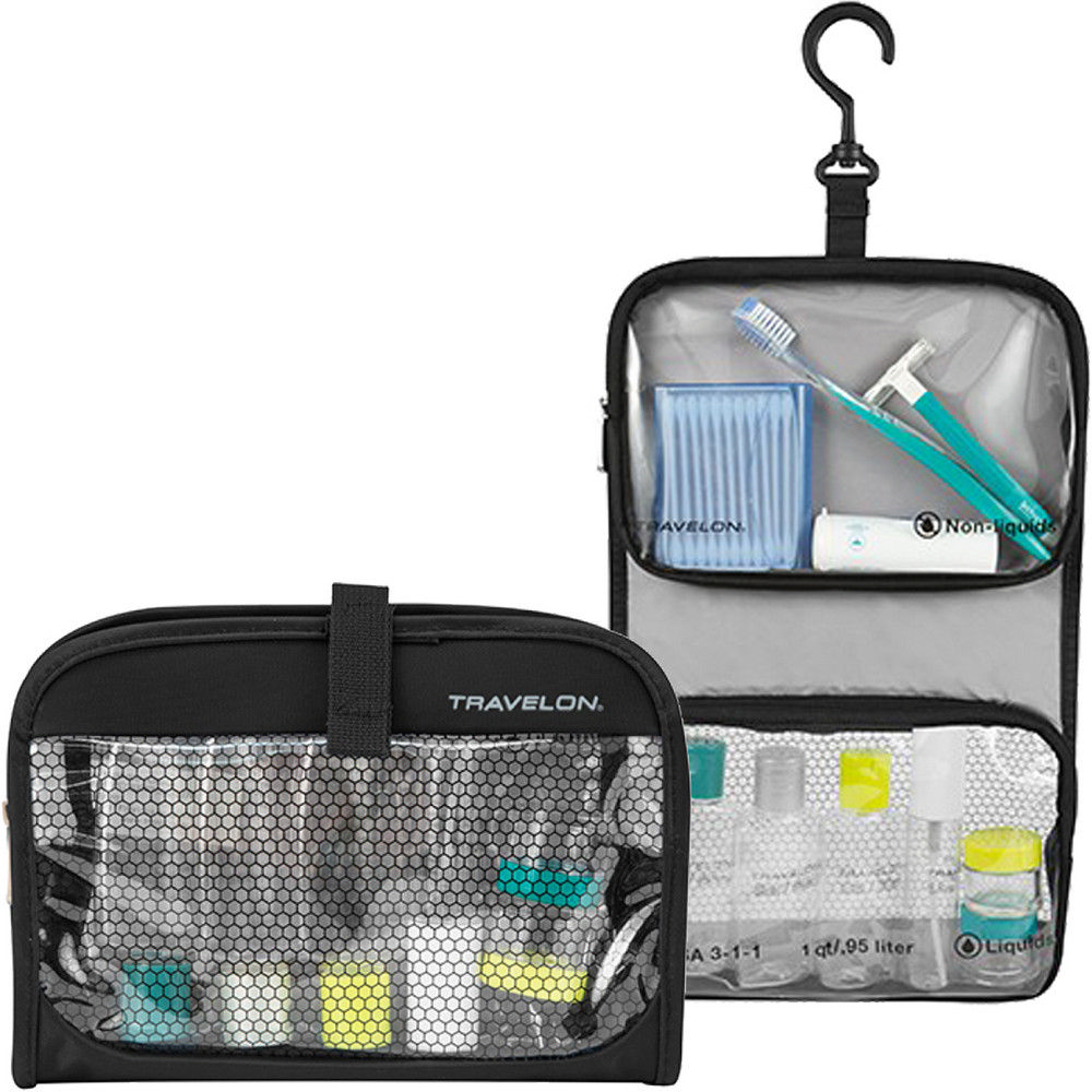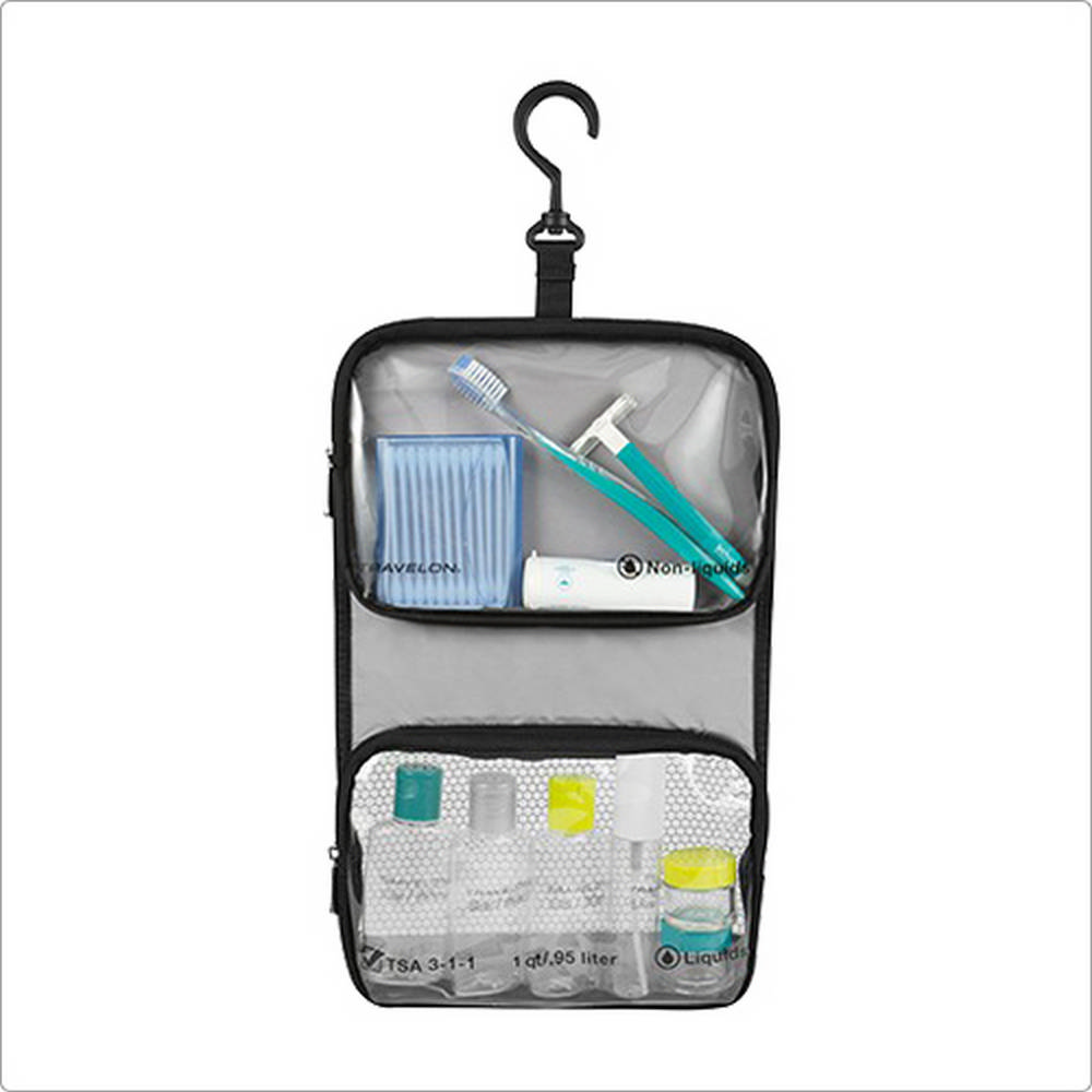 美國 TRAVELON - 掛式雙袋分裝瓶罐6件組(黑) / 化妝包 收納包 旅行小包 盥洗包