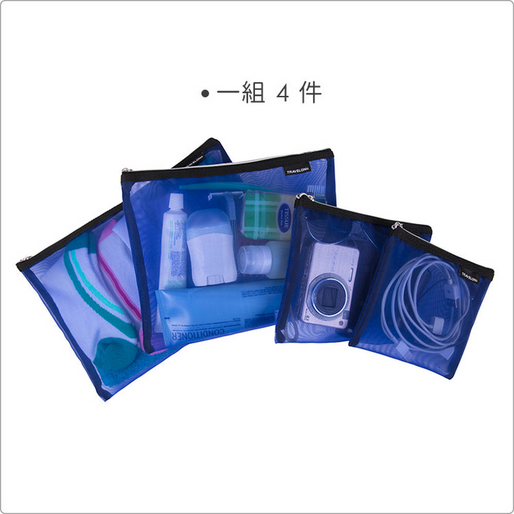 美國 TRAVELON - 旅行收納網袋4件(藍) / 銀飾袋 小物 首飾收納袋