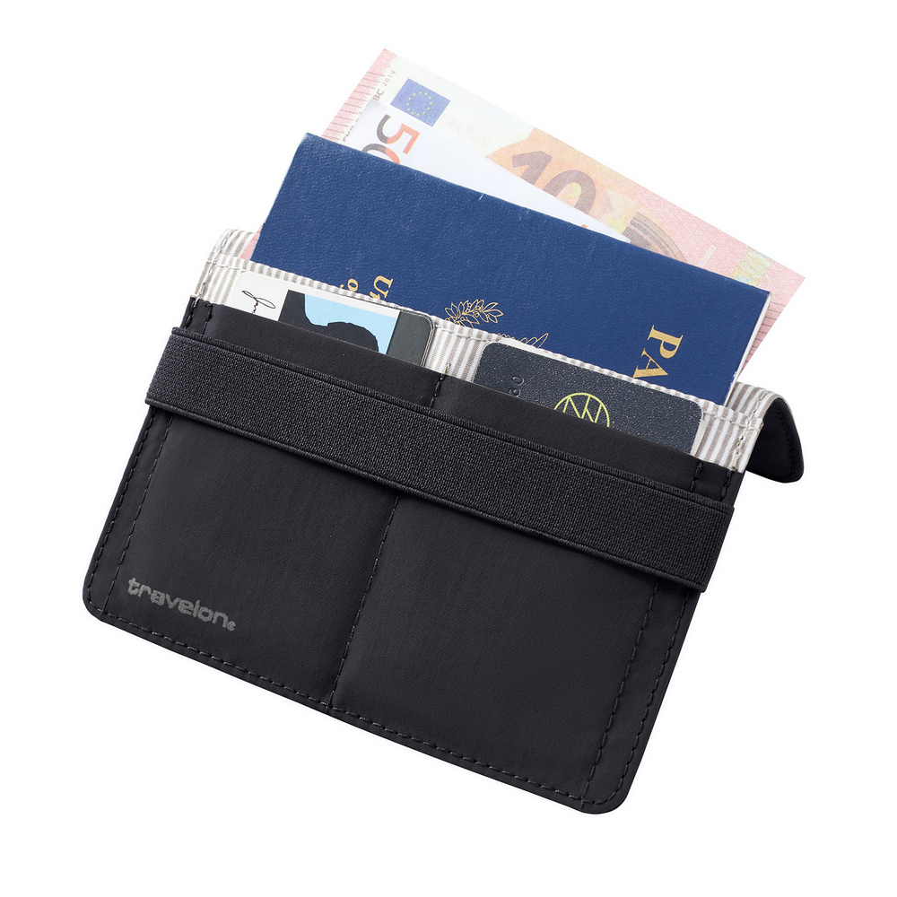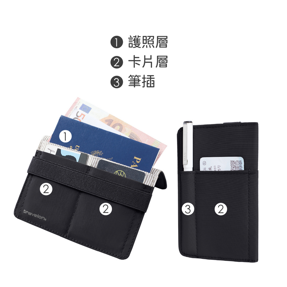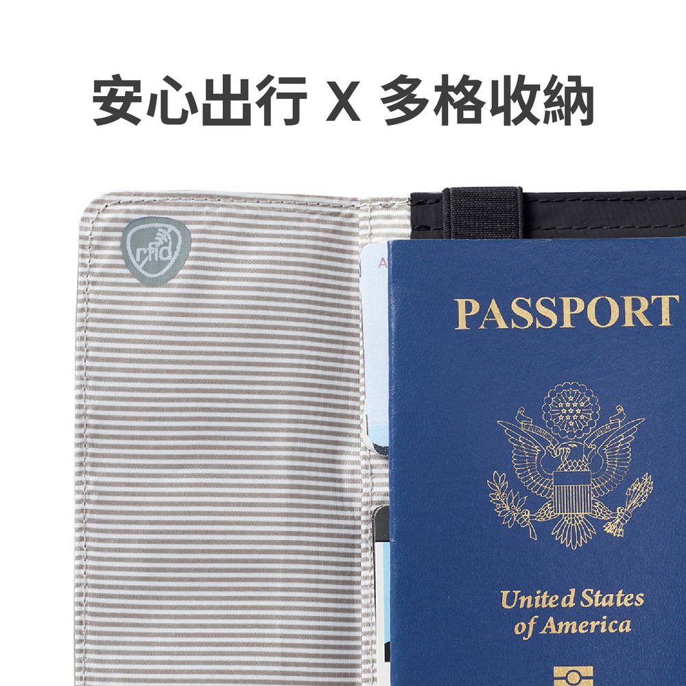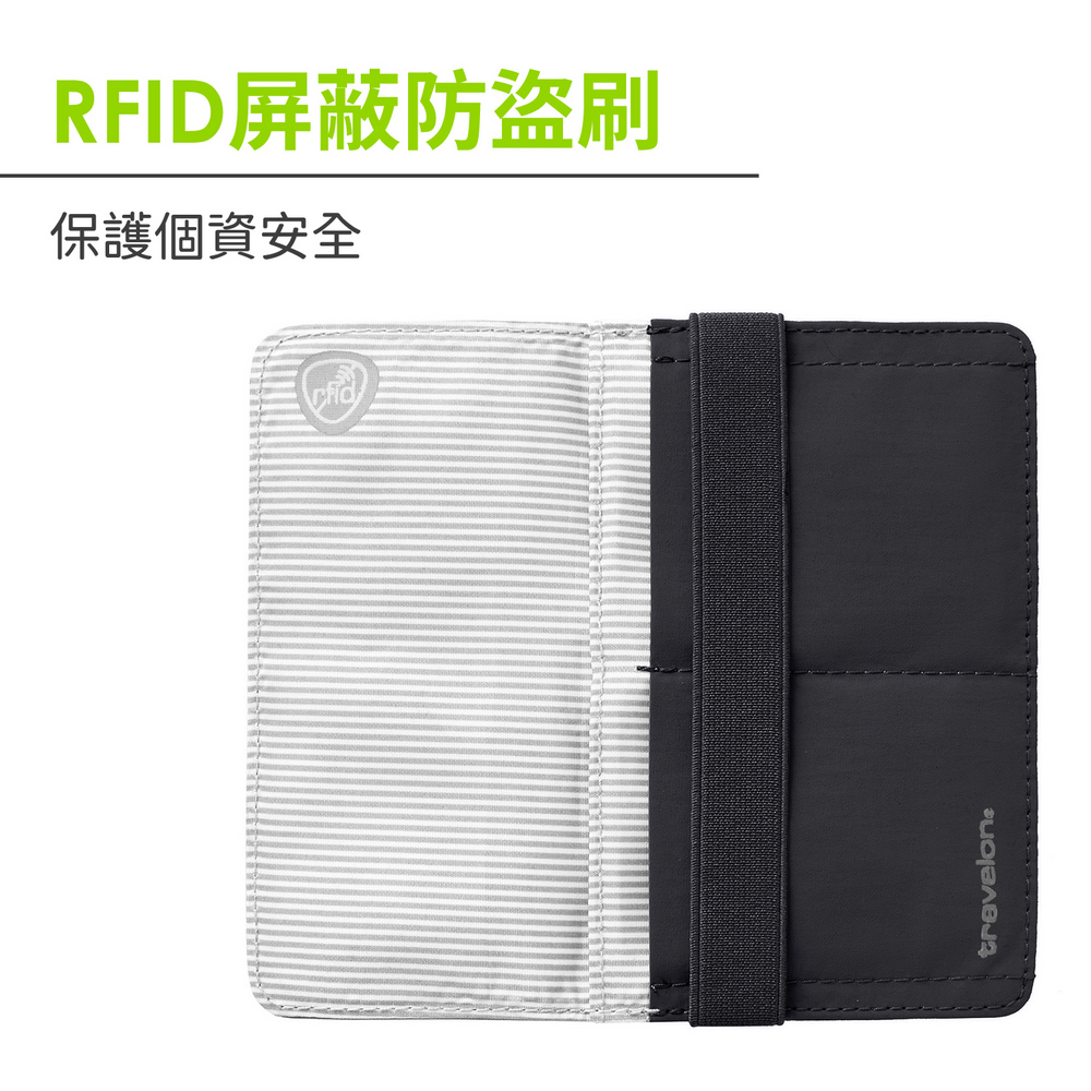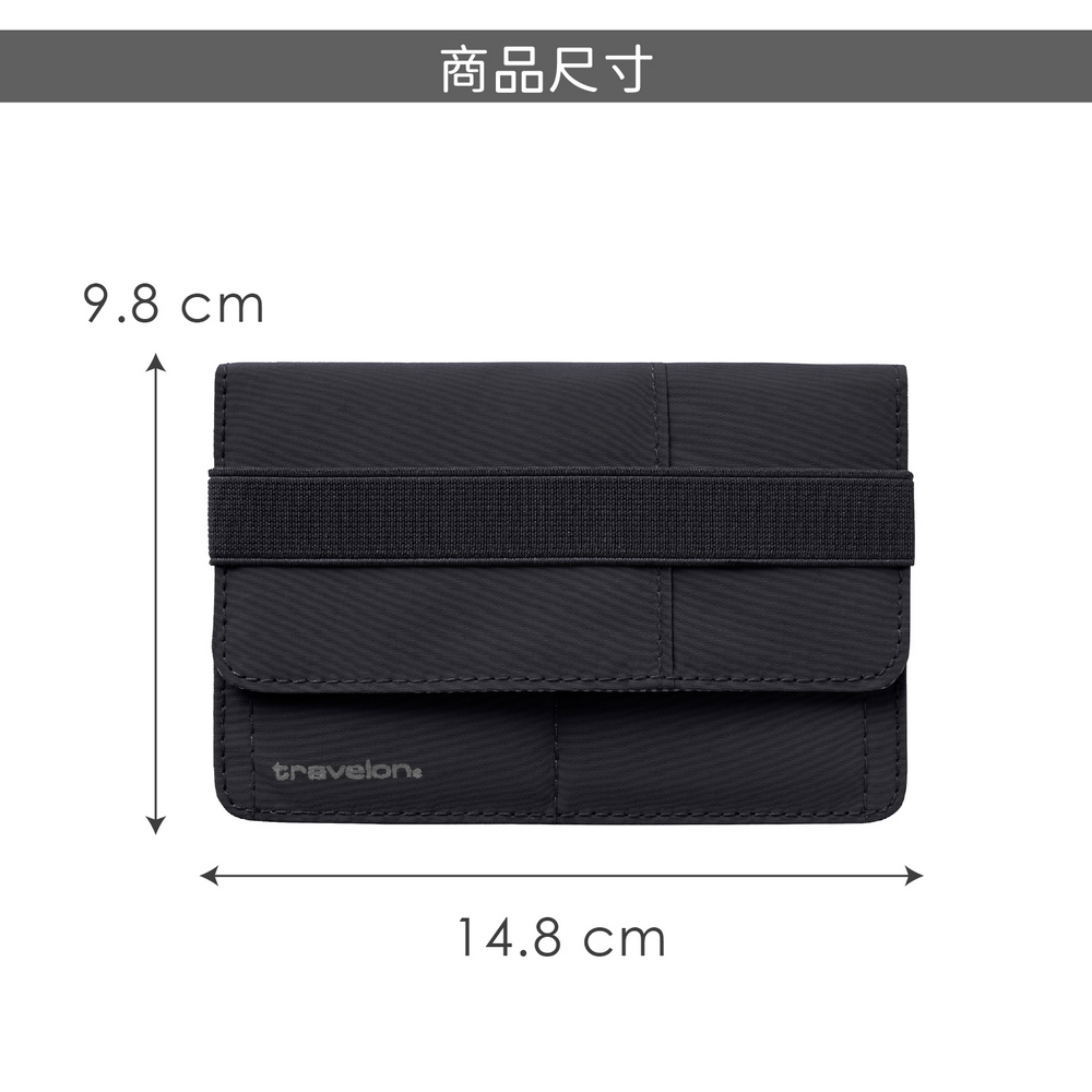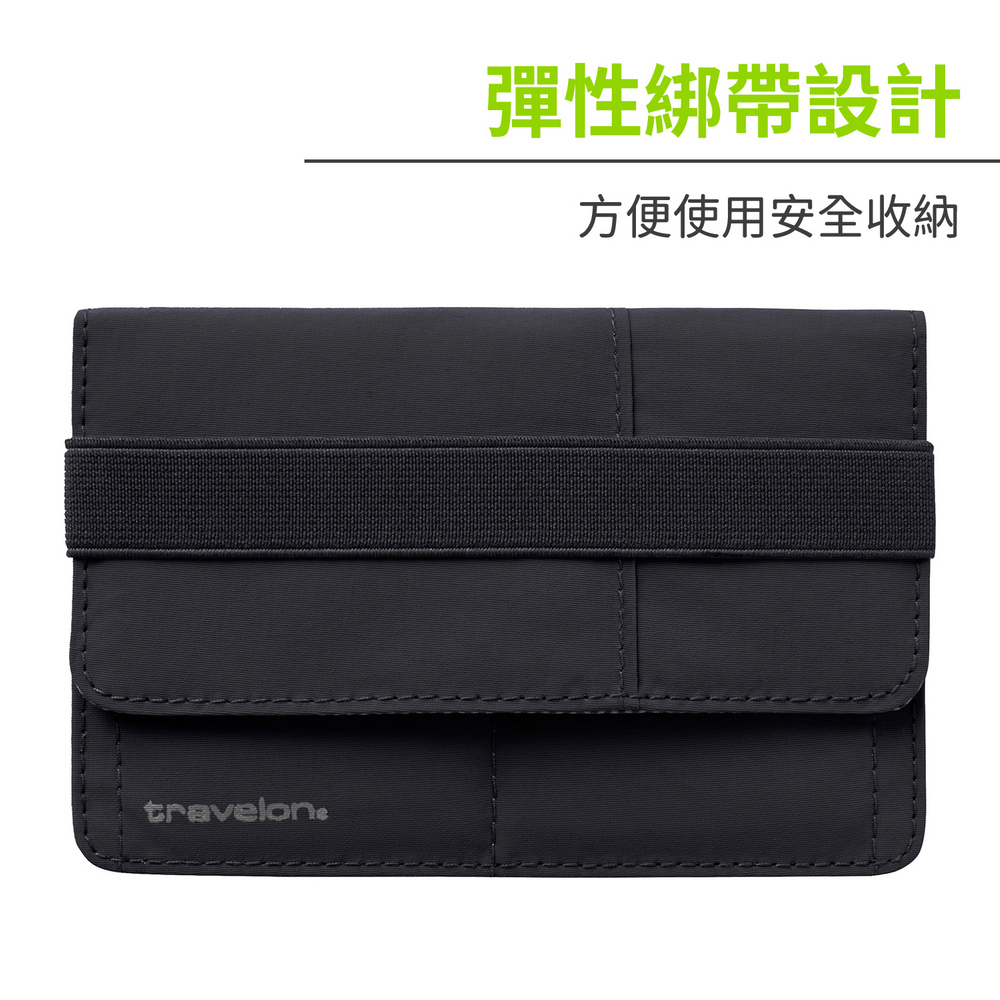 美國 TRAVELON - 防盜綁帶護照夾(墨黑) / RFID護照套 RFID護照包 信用卡收納包