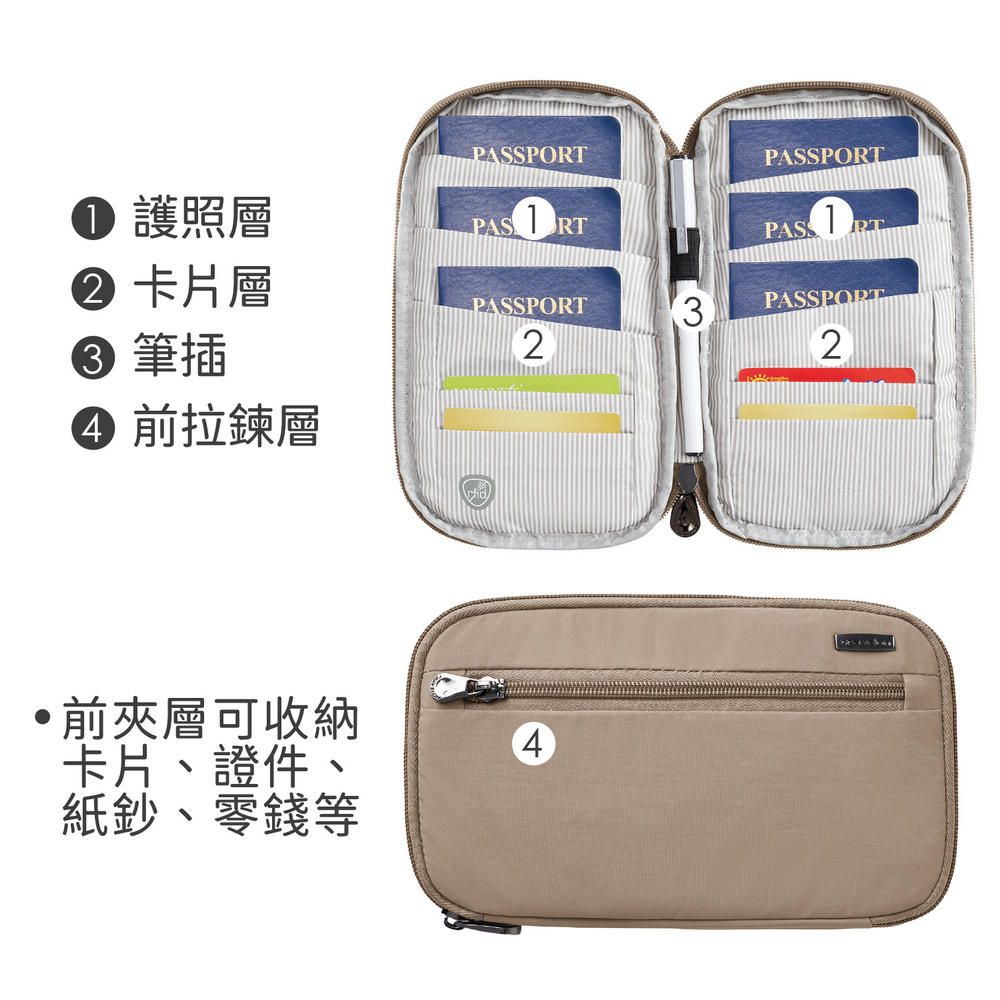美國 TRAVELON - 防盜旅遊護照包(沙棕) / RFID護照套 RFID護照包 信用卡收納包