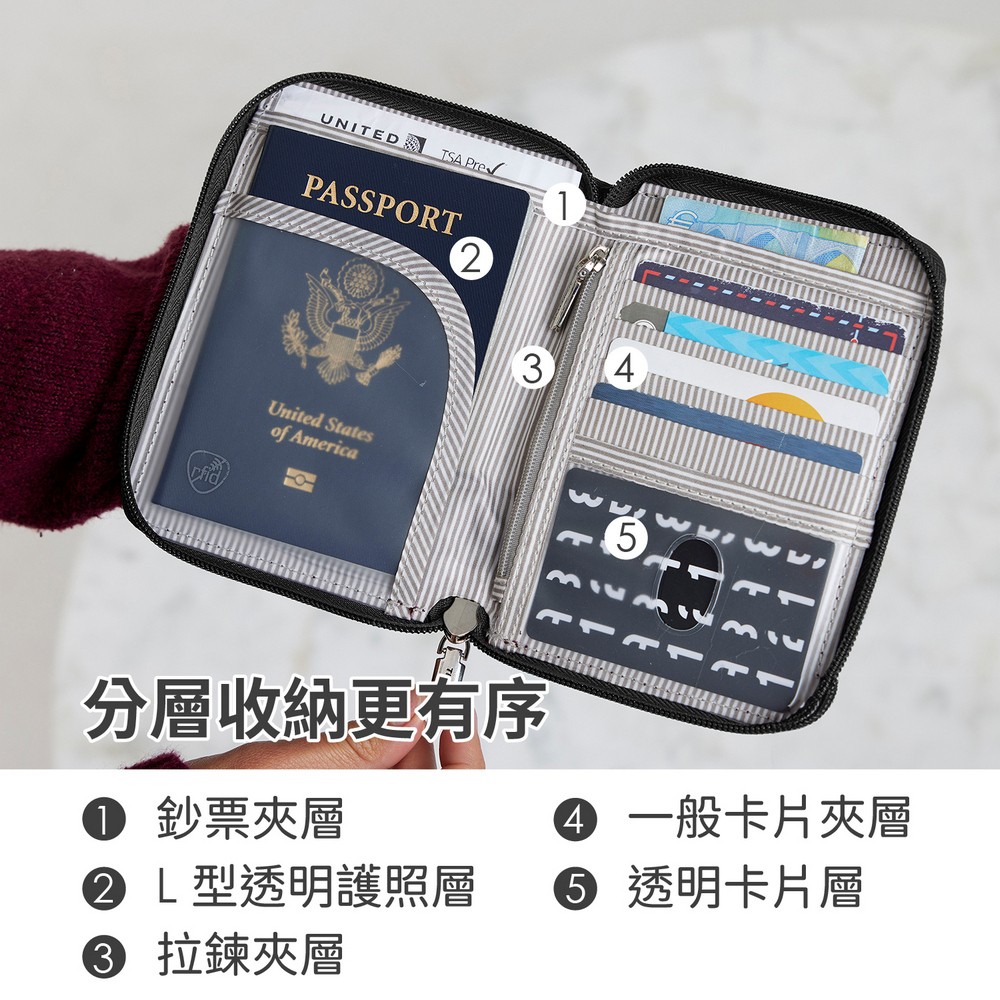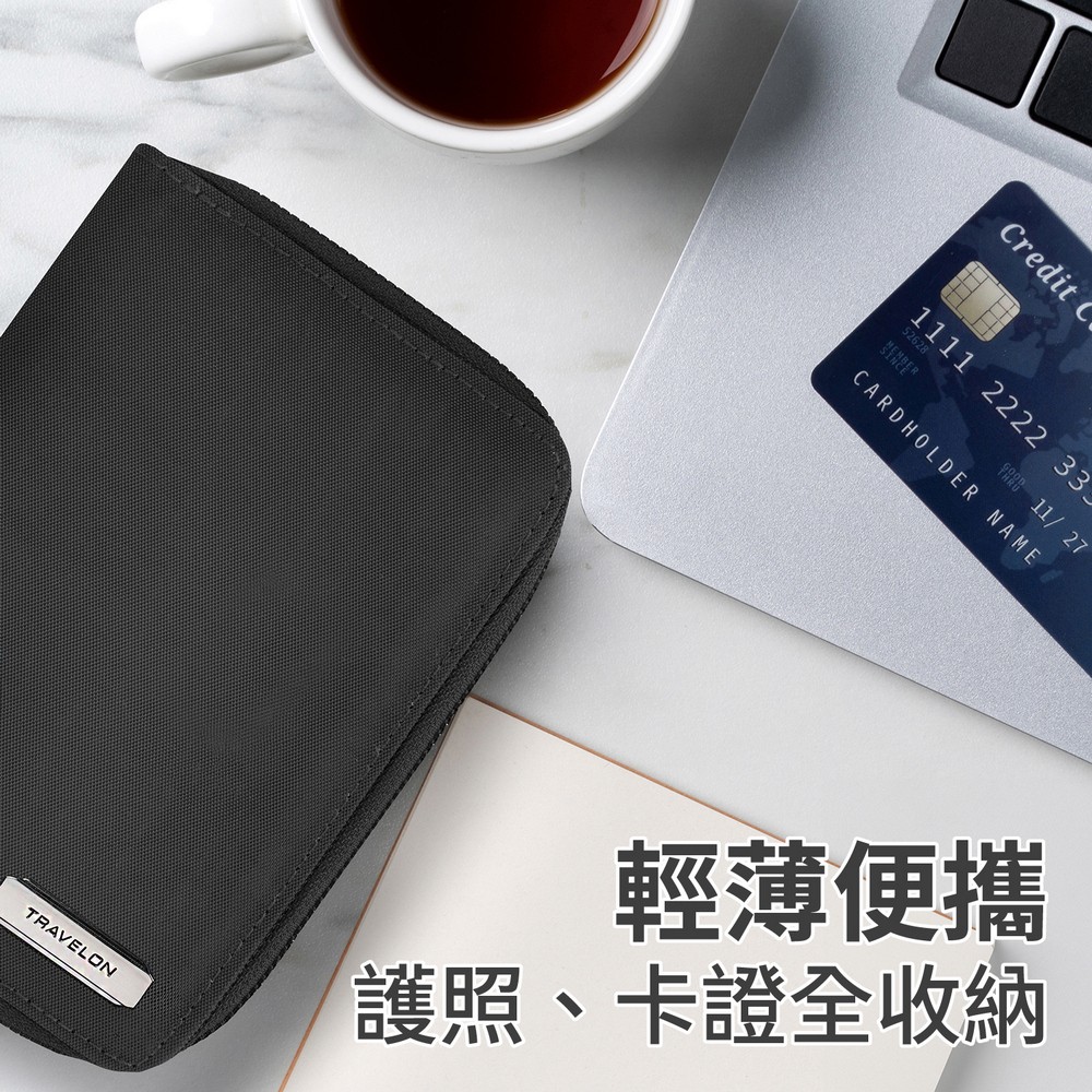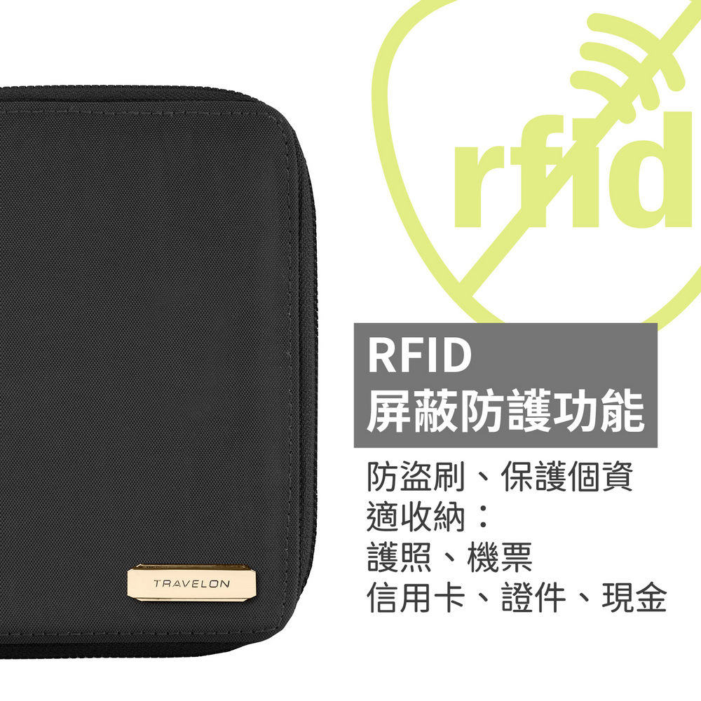 美國 TRAVELON - 對開拉鍊護照包(墨黑)