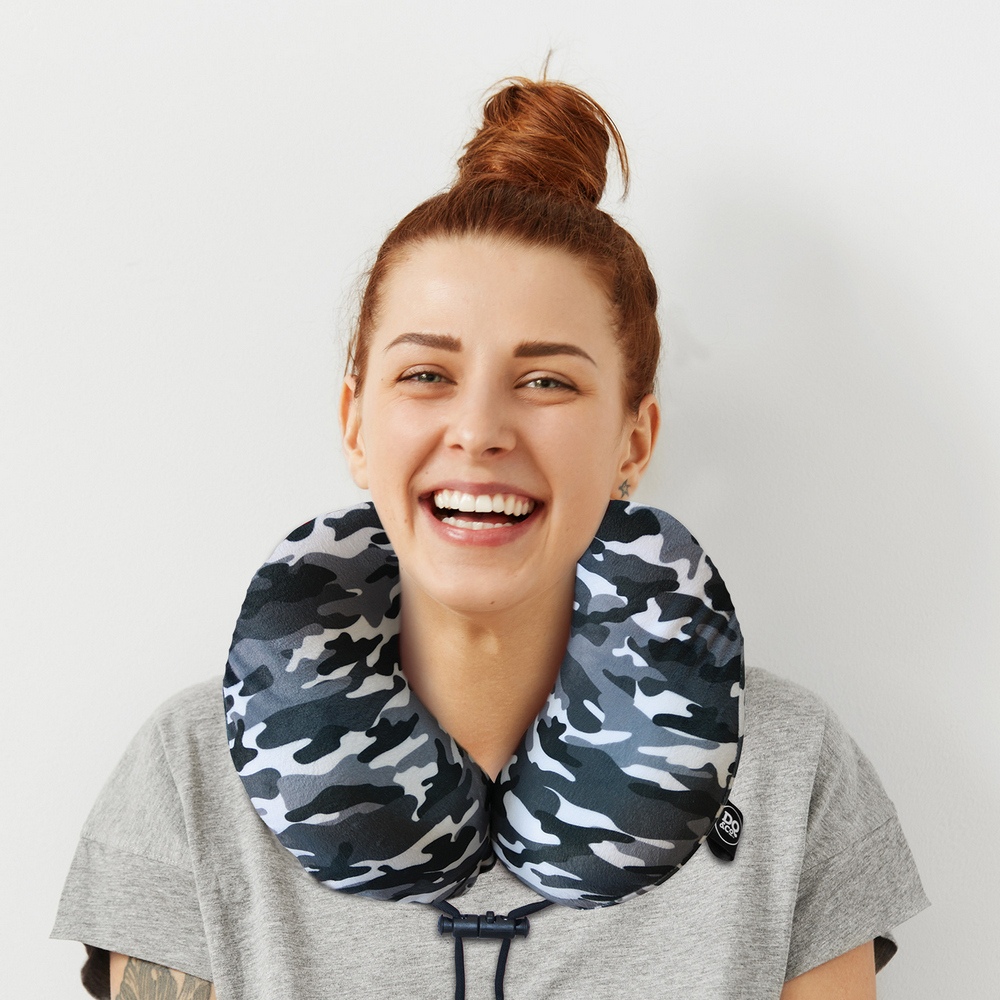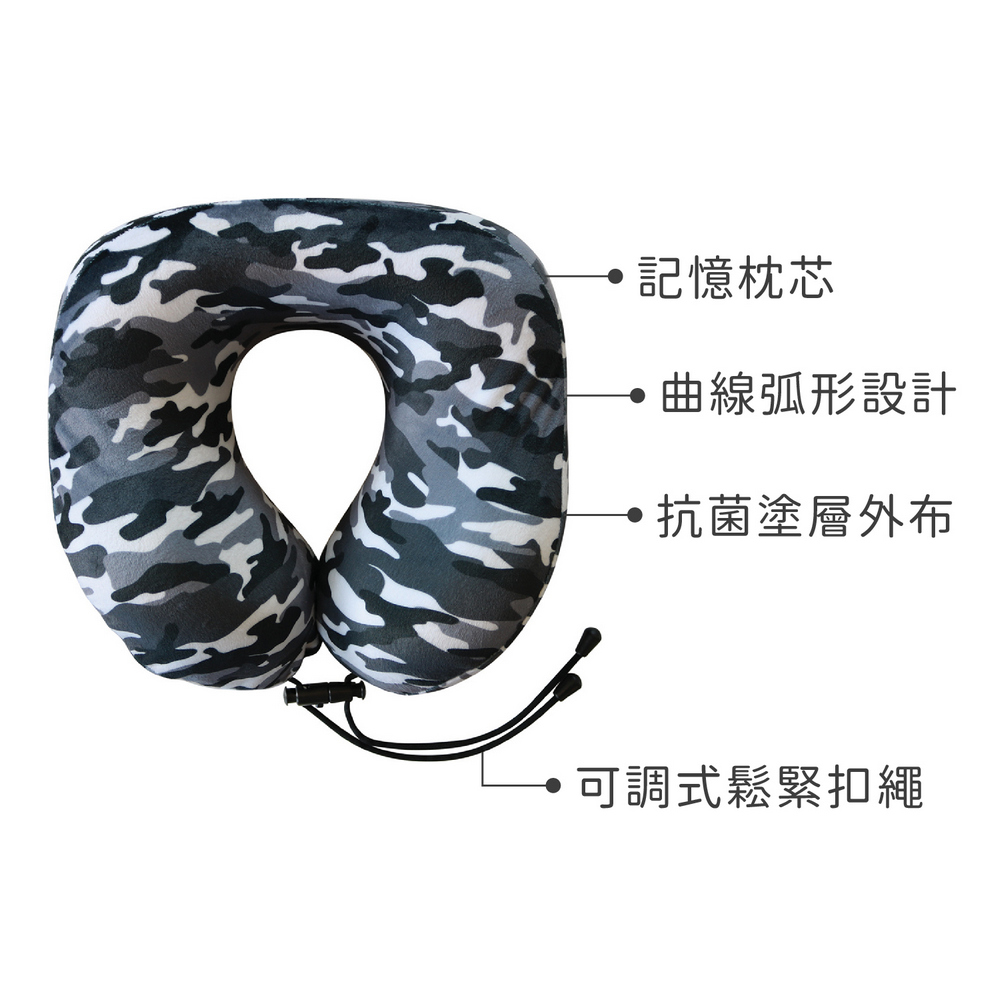 紐西蘭 DQ&CO - 旅行抗菌記憶護頸枕(黑白迷彩) / 午睡枕 飛機枕 旅行枕 護頸枕 U行枕