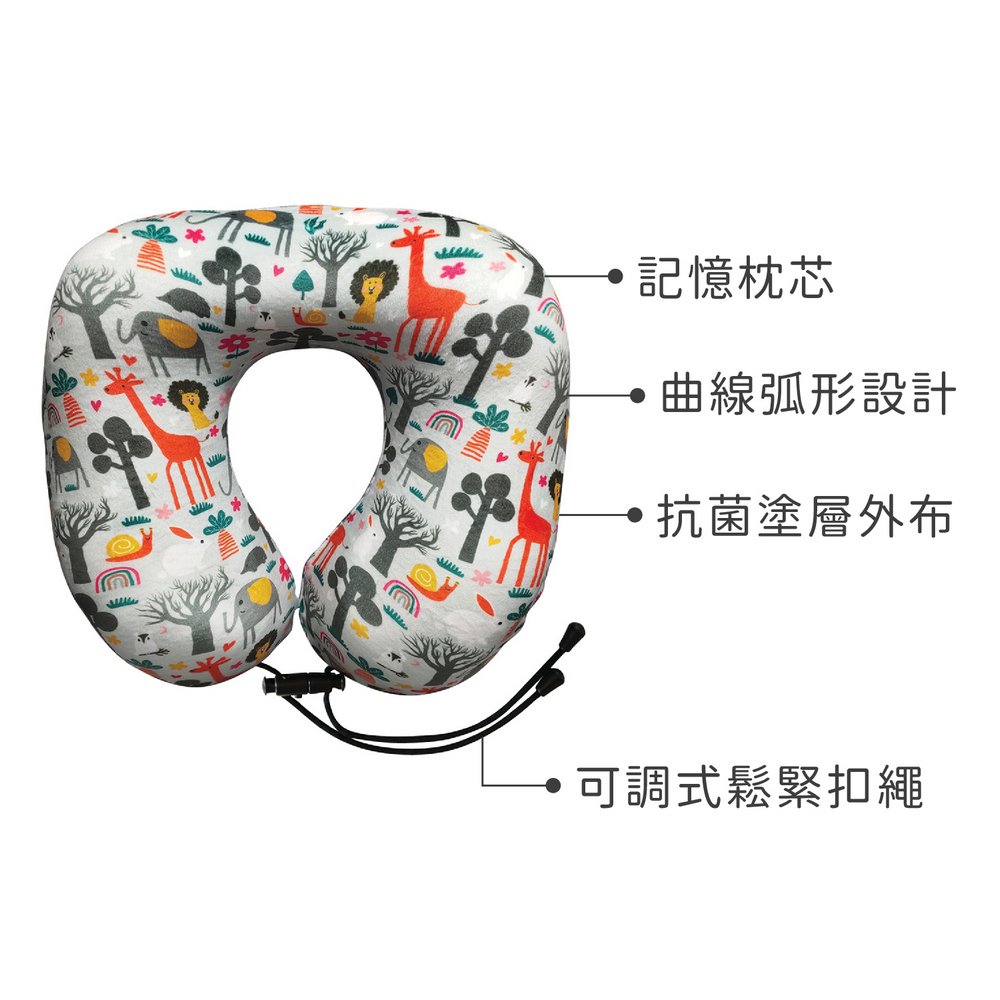 紐西蘭 DQ&CO - 旅行抗菌記憶護頸枕(動物派對) / 午睡枕 飛機枕 旅行枕 護頸枕 U行枕