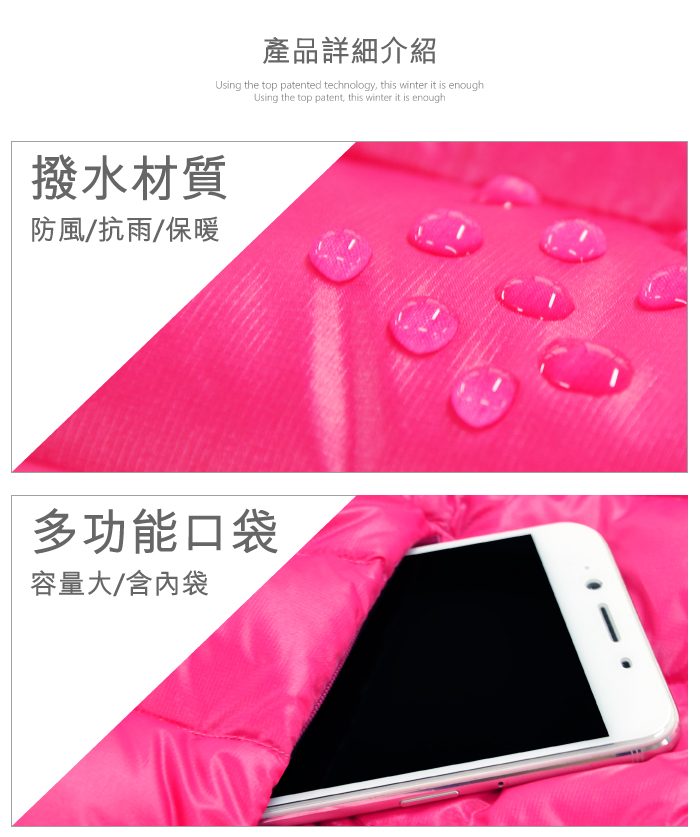 • 使用JIS90頂級羽絨,保暖性高又輕盈