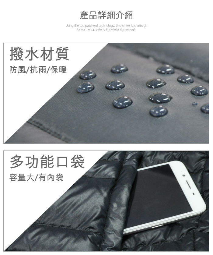 • 使用JIS90頂級羽絨,保暖性高又輕盈