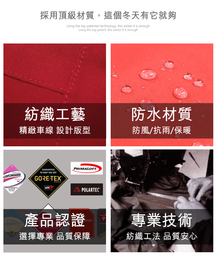 • GORE-TEX產品保證持久防水、防風、極度透氣