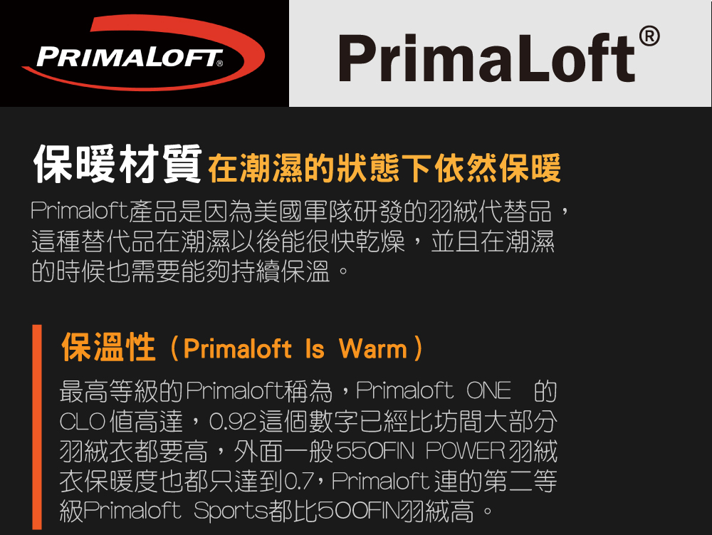 • PRIMALOFT 輕量又保暖
