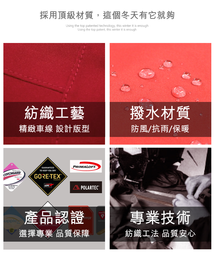 • GORE-TEX產品保證持久防水、防風、極度透氣