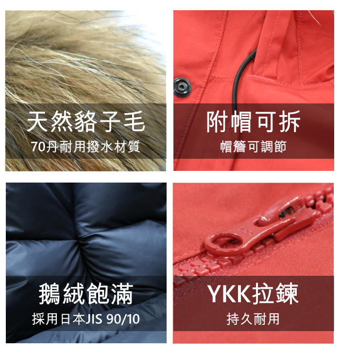 • 採用YKK防水拉鍊及檔風門襟,有效阻絕風雨