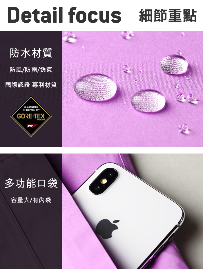 • GORE-TEX產品保證持久防水、防風、極度透氣