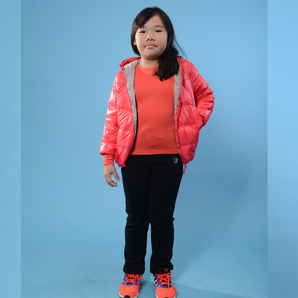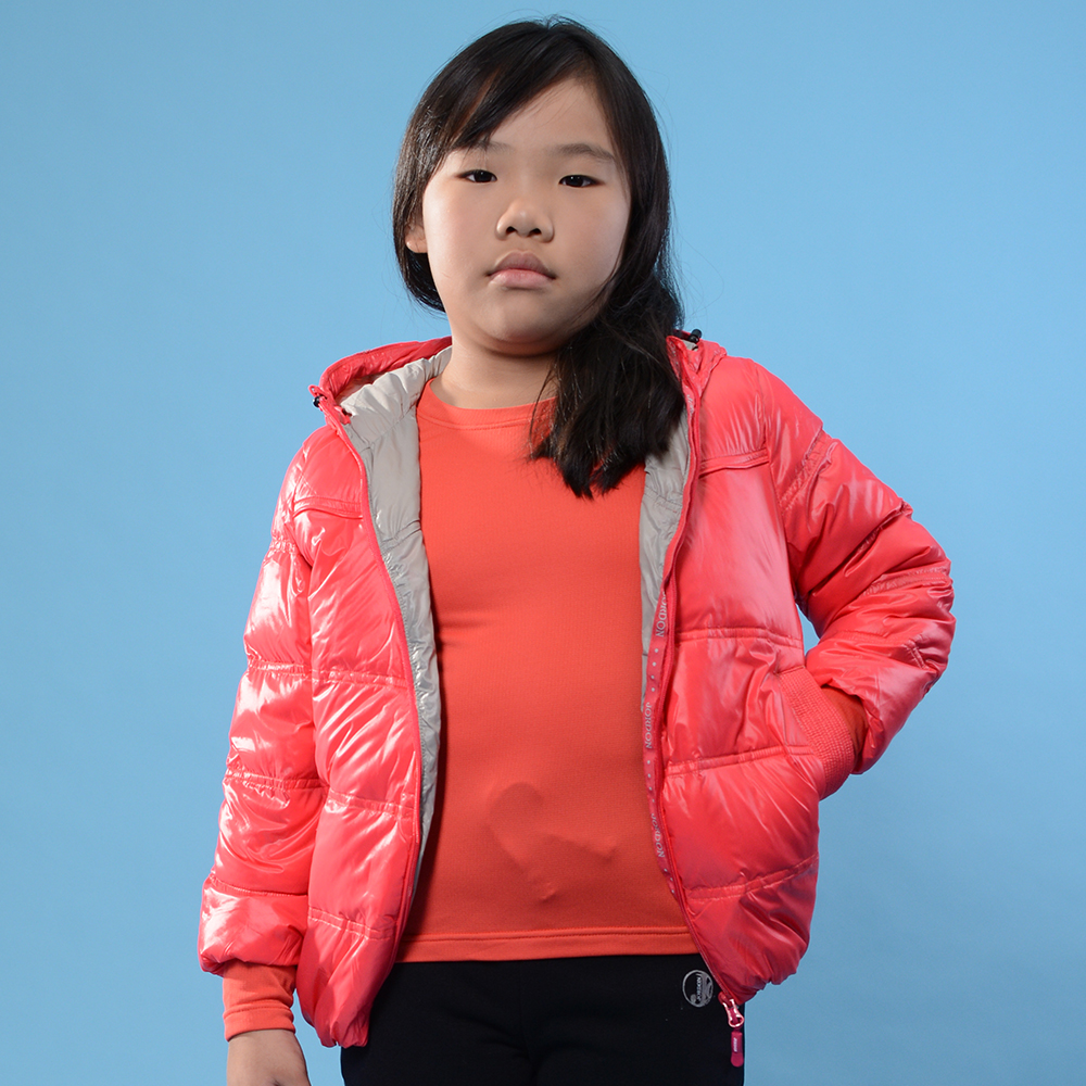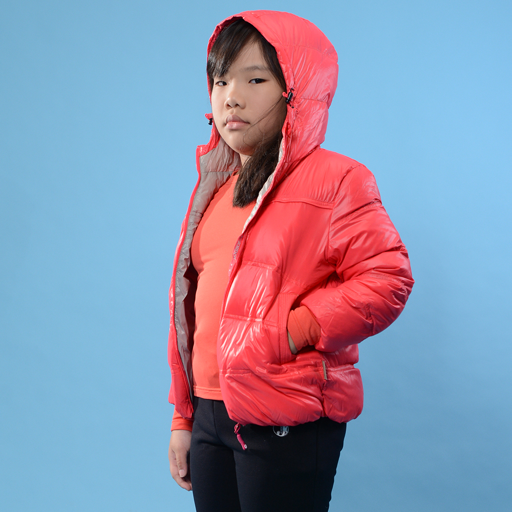 • 一體成型連帽設計,內裡對比配色表現兒童活潑感