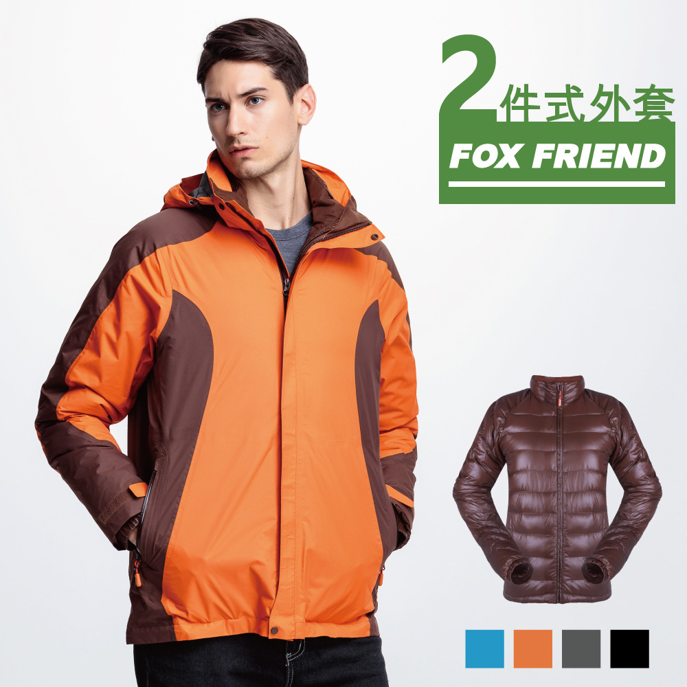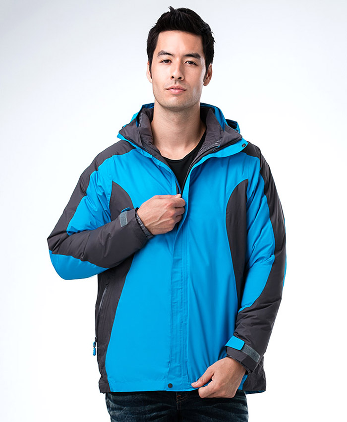 JORDON 男款台灣防水布 防水外套+羽絨兩件式外套