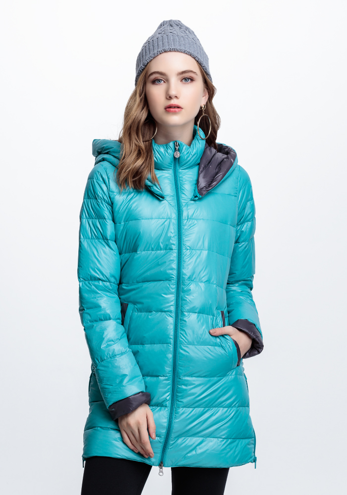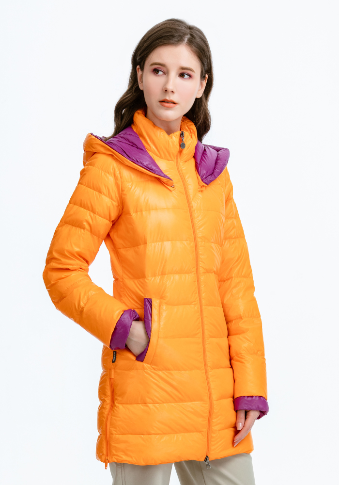 JORDON 女款配色長版羽絨大衣