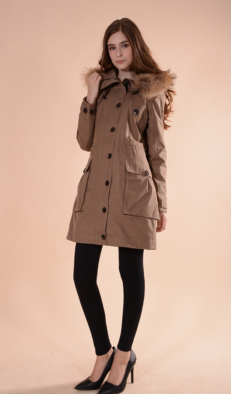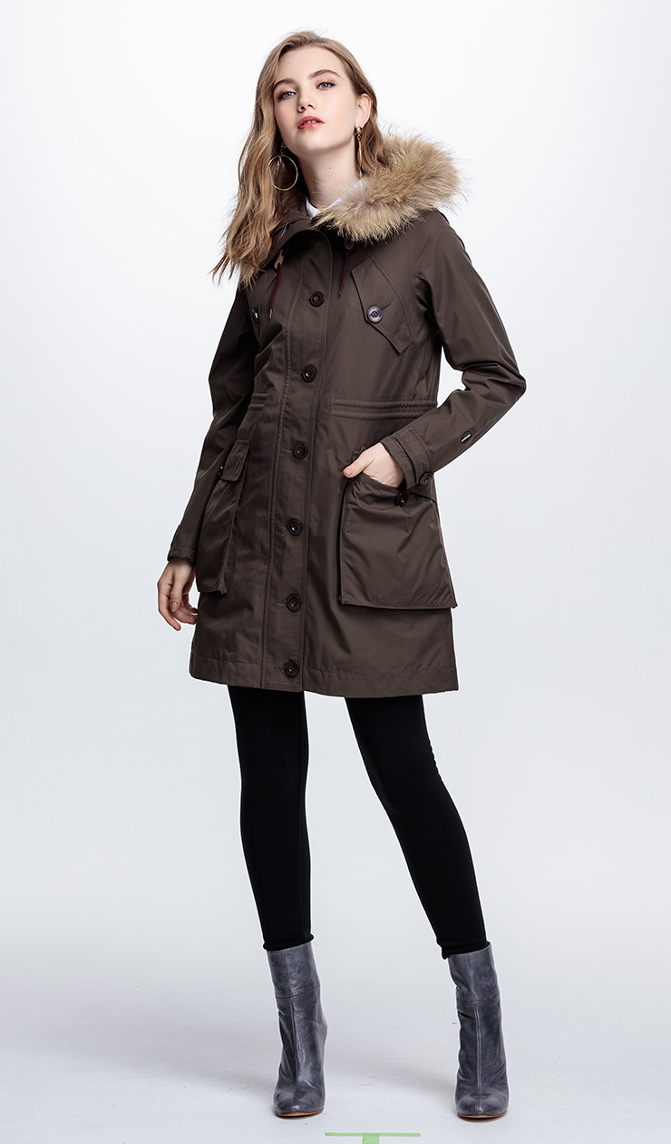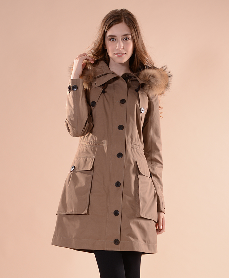 .大帽型設計加上華麗毛條、大口袋、配色縫扣,突顯個性化