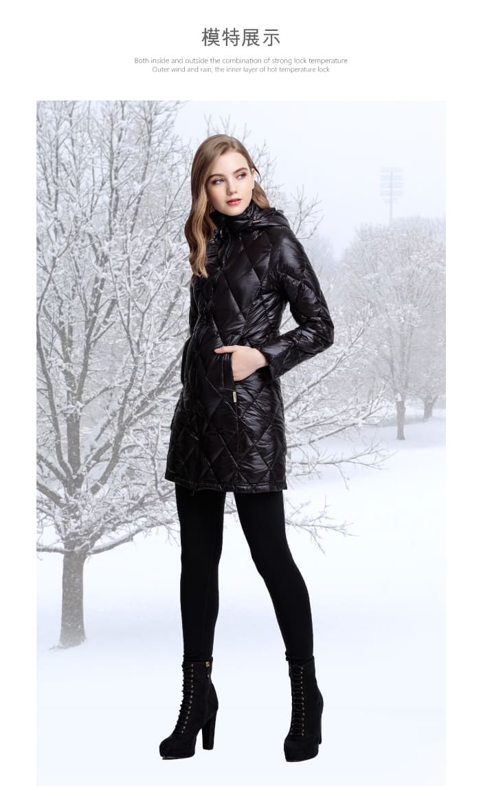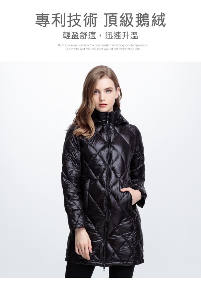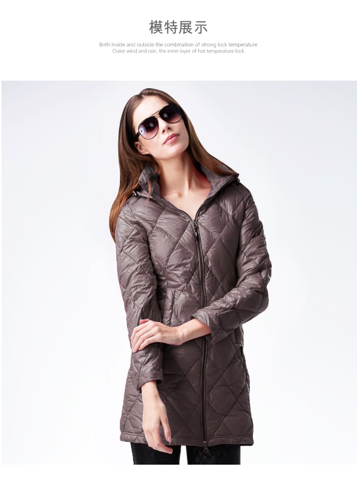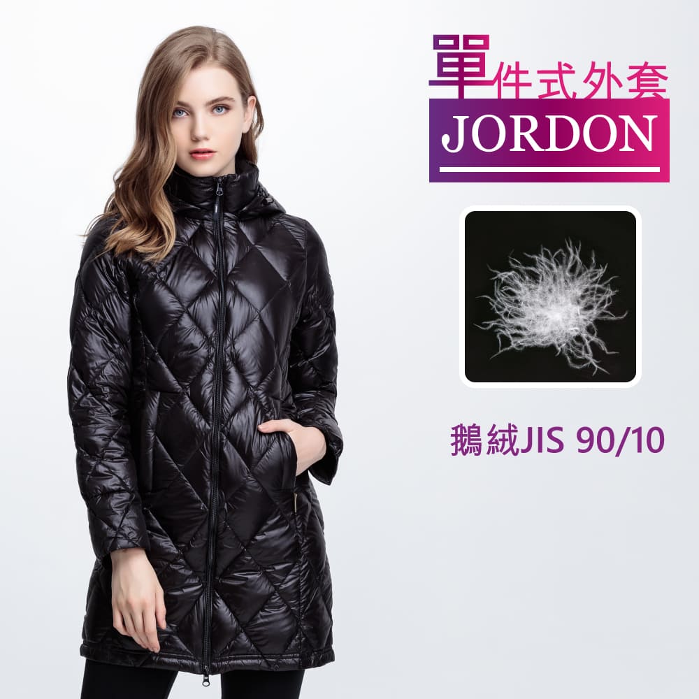 JORDON 菱格超輕鵝絨 JIS90/10長大衣 芋灰女版