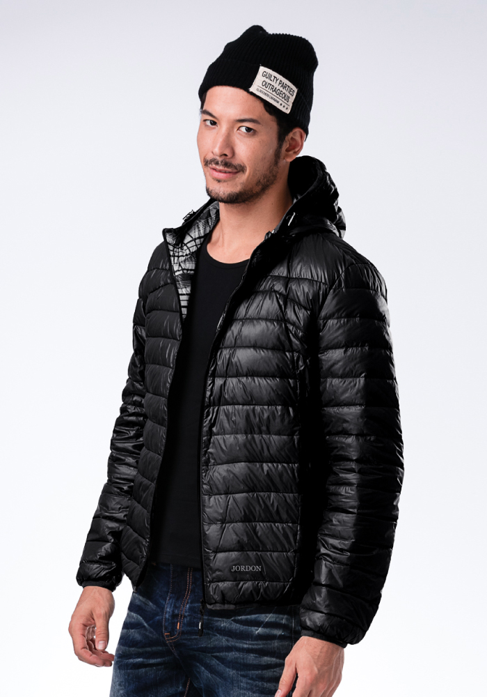 JORDON 雙配色 橫紋 輕量羽絨外套