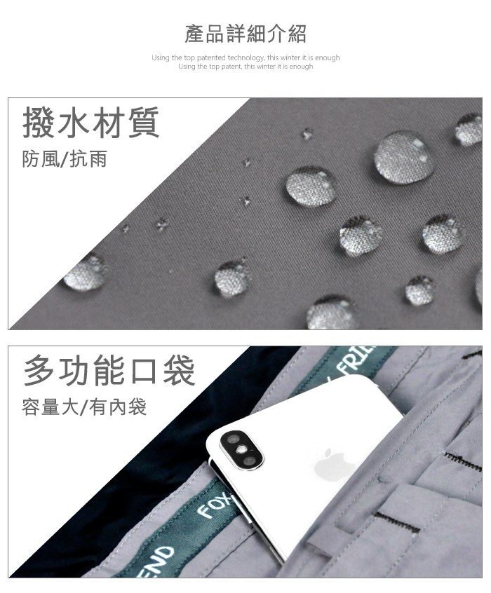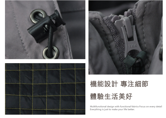 • 用YKK防水拉鍊及檔風門襟,有效阻絕風雨