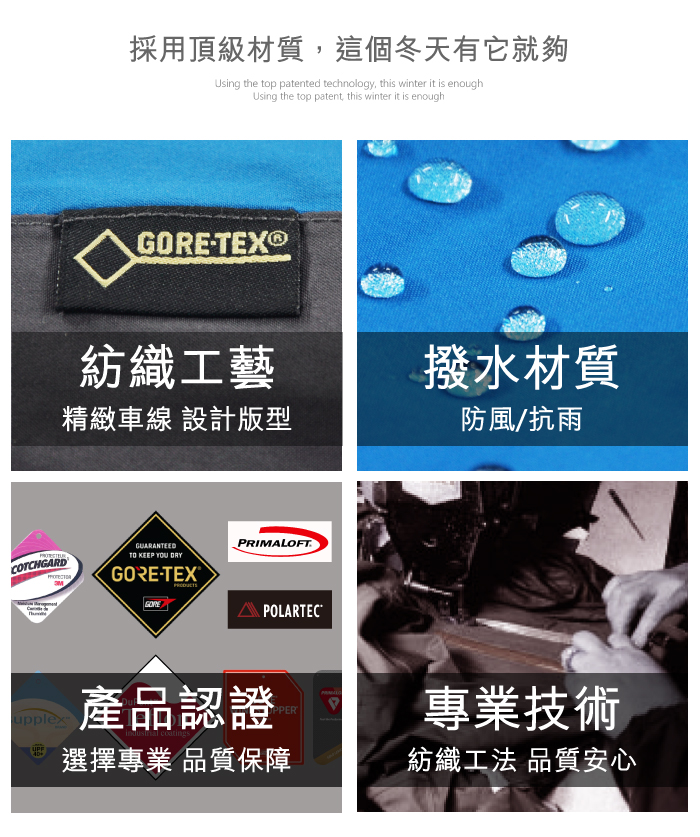 • GORE-TEX產品保證持久防水、防風、極度透氣