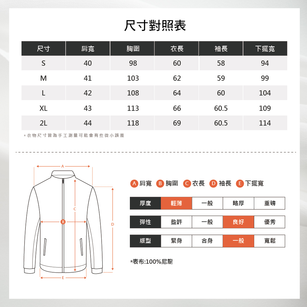 • 具防風、透氣的優異機能效果