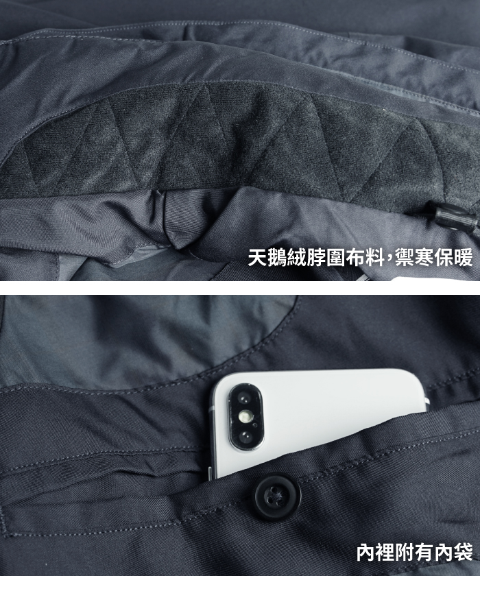 • 保暖立領設計,使冷風不易灌入