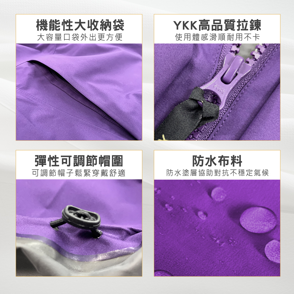 • 採用YKK防水拉鍊及檔風門襟,有效阻絕風雨