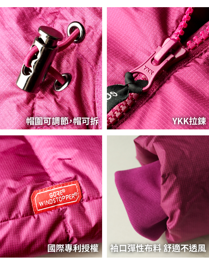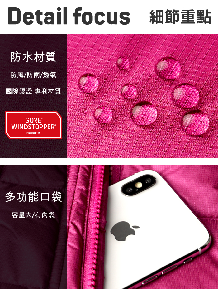 • 表布WINDSTOPPER細格壓光布,增加運動感