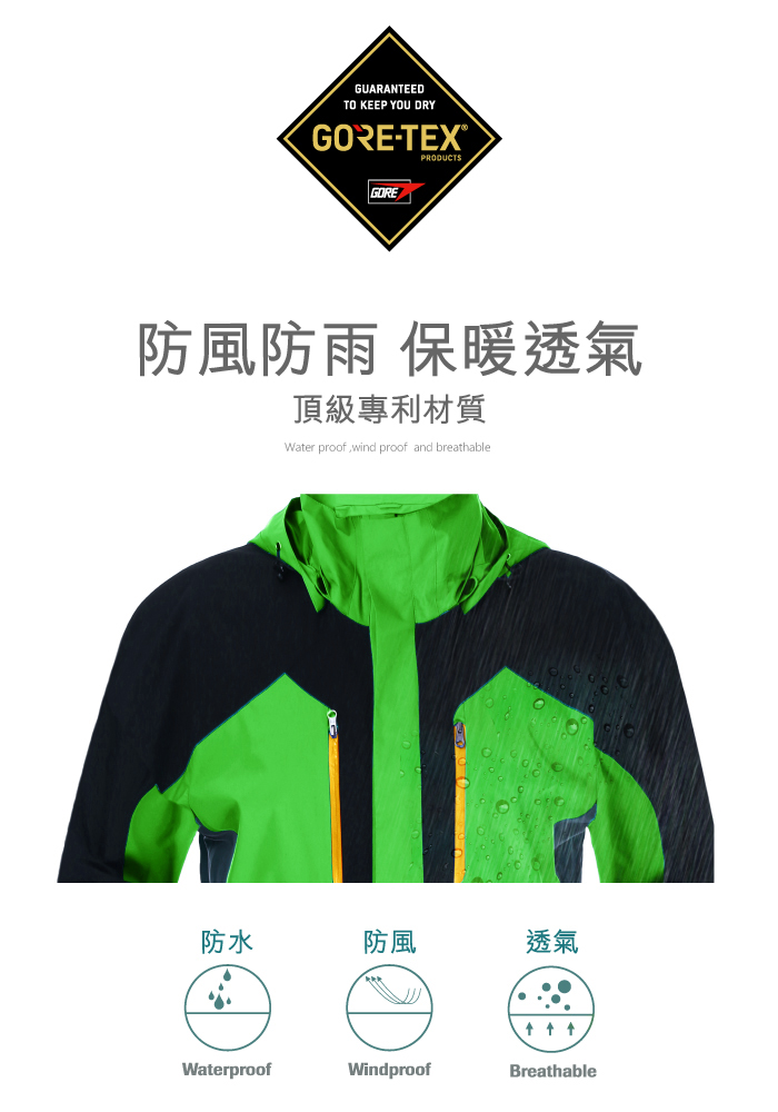 • GORE-TEX產品保證持久防水、防風、極度透氣