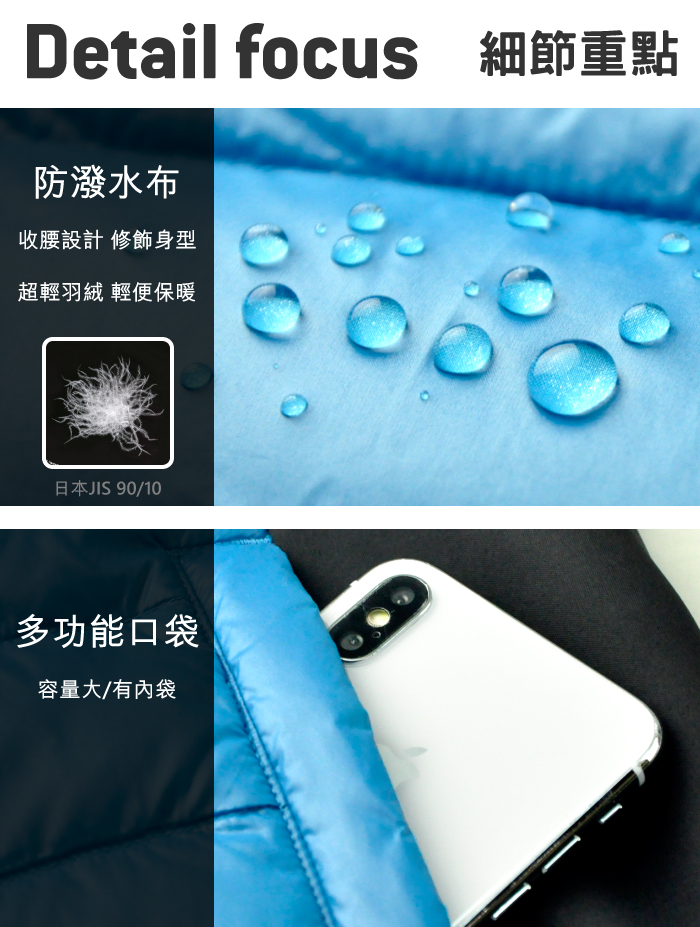 • 日規 JIS 90%撥水羽絨,10%羽毛