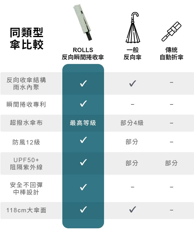 ROLLS REVERSE 反向瞬間捲收傘-多色任選