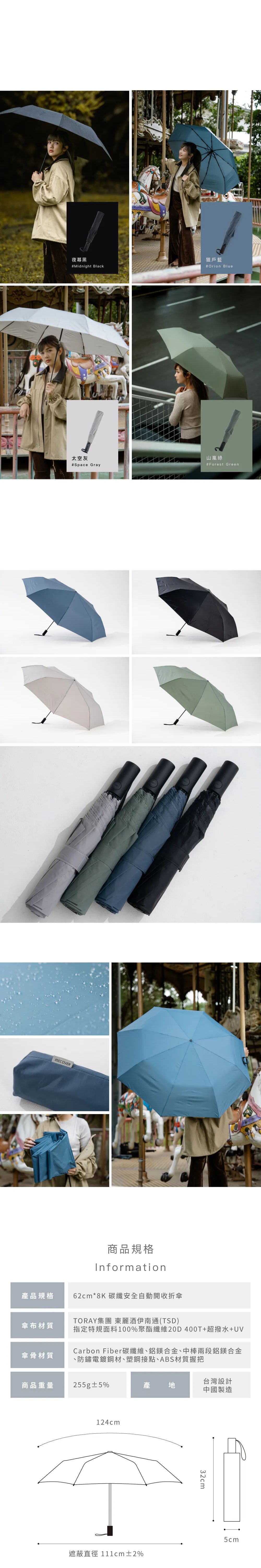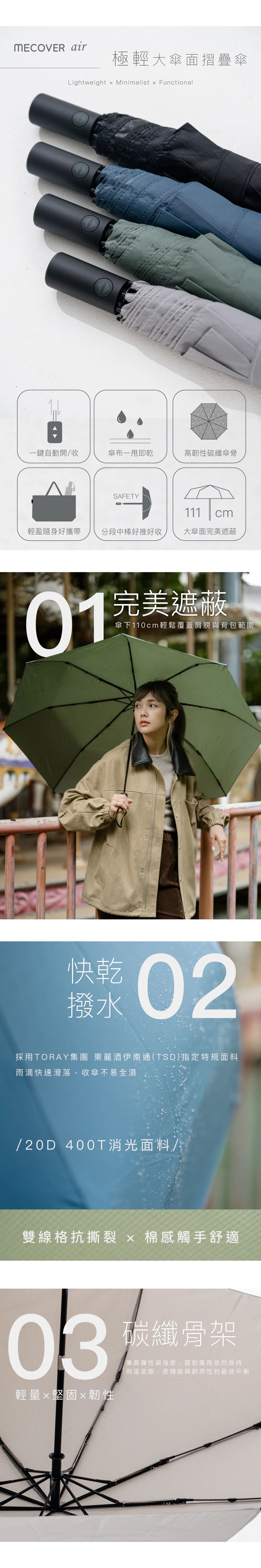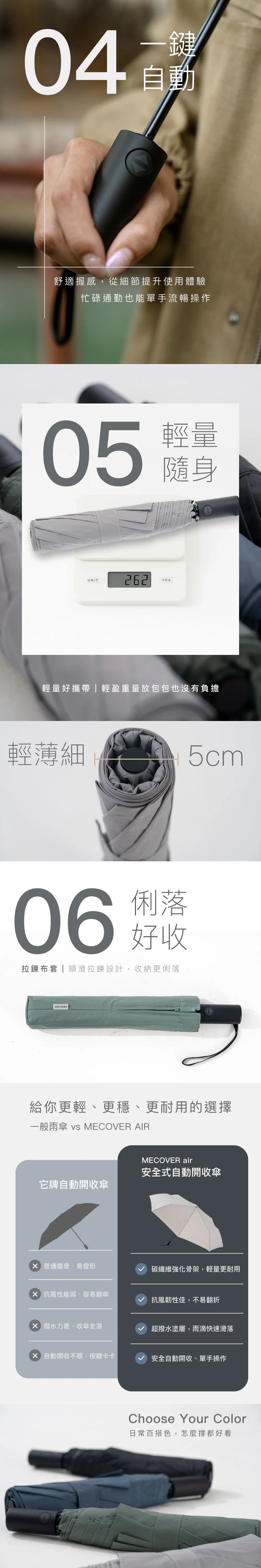 MECOVER air 極輕細防回彈自動傘 - 四色任選 (安全分段收 輕量便攜 碳纖維傘骨 一鍵自動開收)