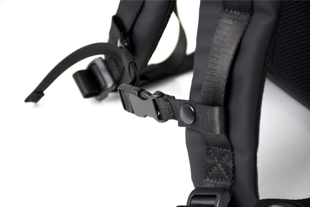 針對長時間行走或騎車移動時,背包滑動或不穩定的問題,我們在肩帶上增設可調式胸扣,能將背包固定於身體中心,減少搖晃,提升背負穩定性與舒適度,特別適合機車通勤族或需長距離步行的用戶。