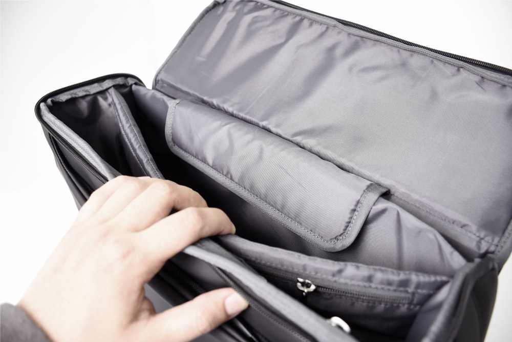 升級後的筆電夾層兩側新增魔鬼氈側翼,即使在快速打開背包時,筆電也不會從側邊滑出,避免掉落損壞,提升移動過程中的安全性。