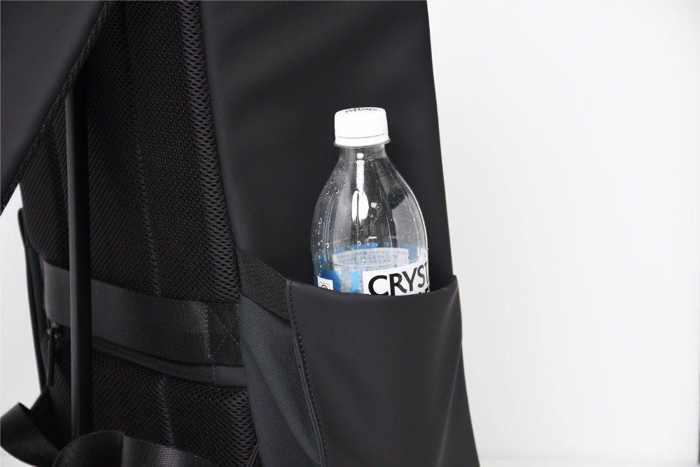 過去使用者反映無法快速收納水壺或雨傘,因此我們在背包左右側新增彈性布料口袋,可放入 600ml 水瓶、折疊傘,亦可作為臨時放置口罩、票卡的快速存取空間,適合上下班、外出採買等即時需求。