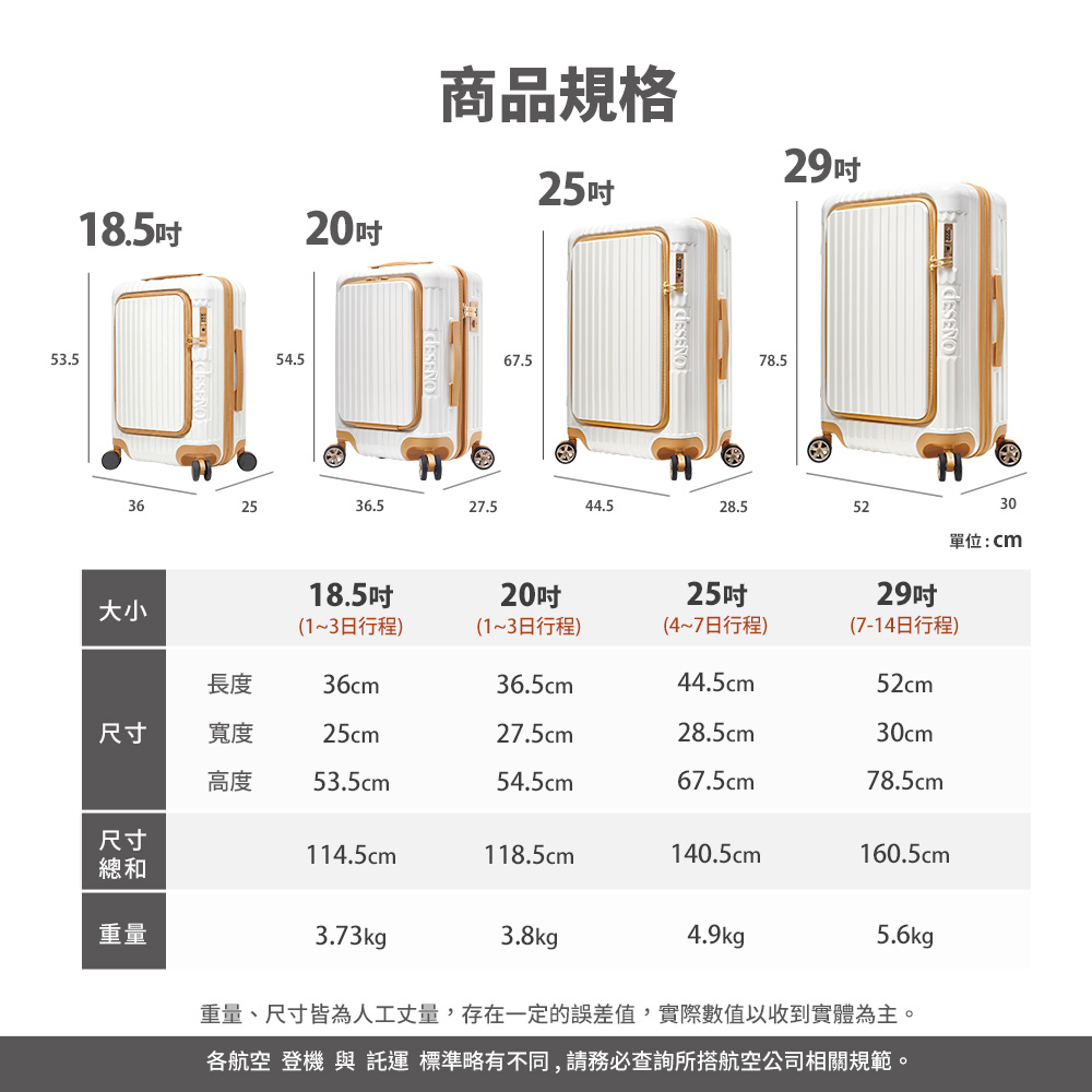 20吋" –約長36.5x寬27.5x高54.5(cm) 重量約 3.80 kg