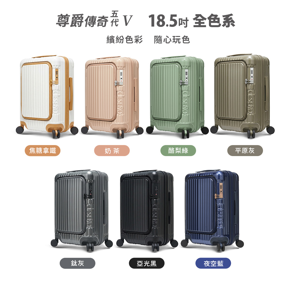 【2026全新上市,預購4/10出貨】尊爵傳奇V 18.5吋 前開對開式拉鍊行李箱【多色可選】