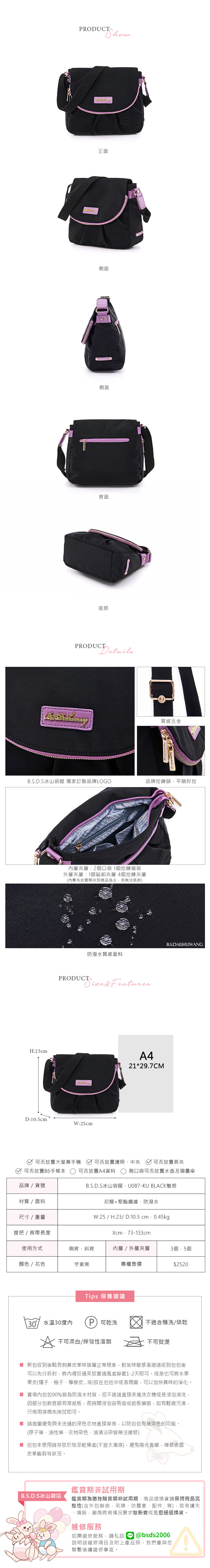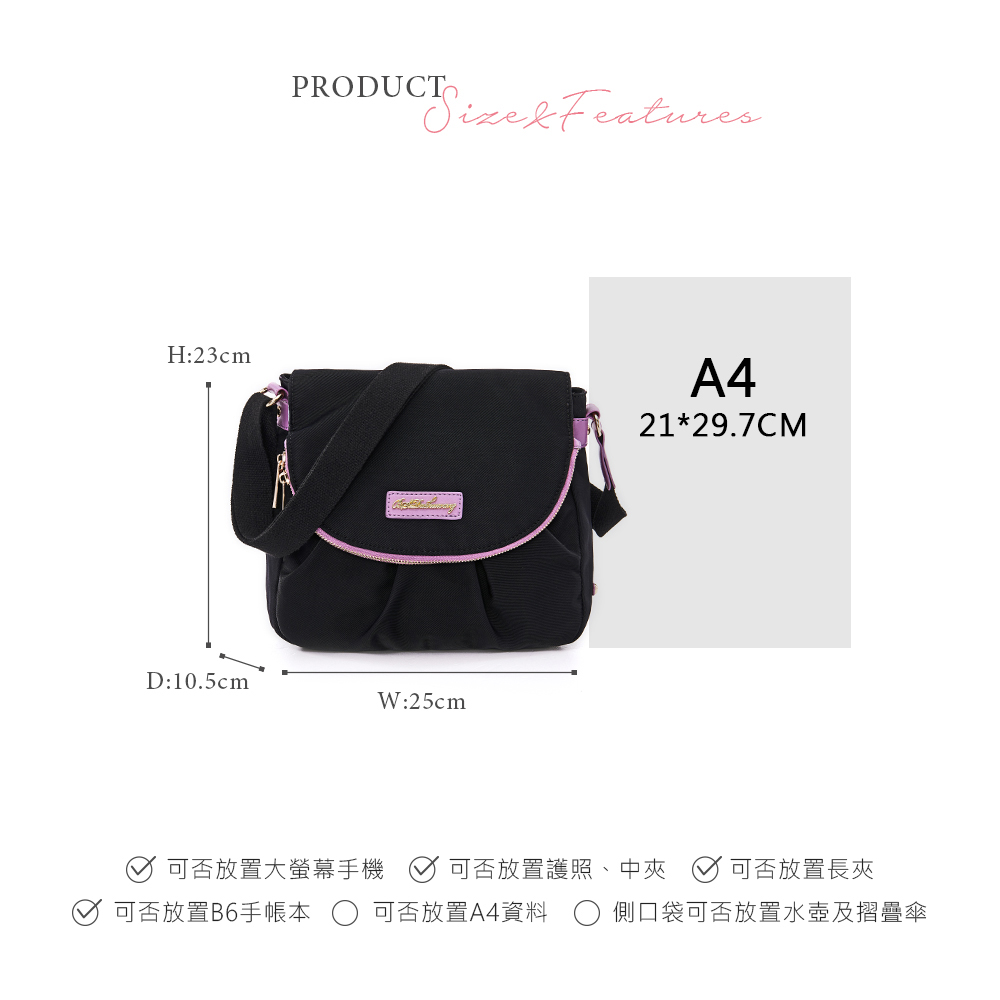 B.S.D.S冰山袋鼠 - BLACK魅惑 - 典雅拼接掀蓋式斜背包 - 芋紫黑【U087-KU】