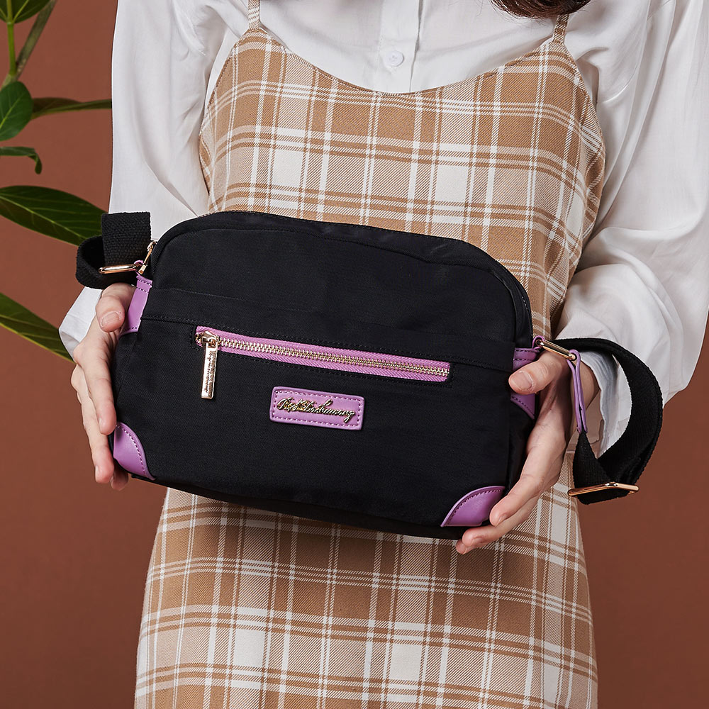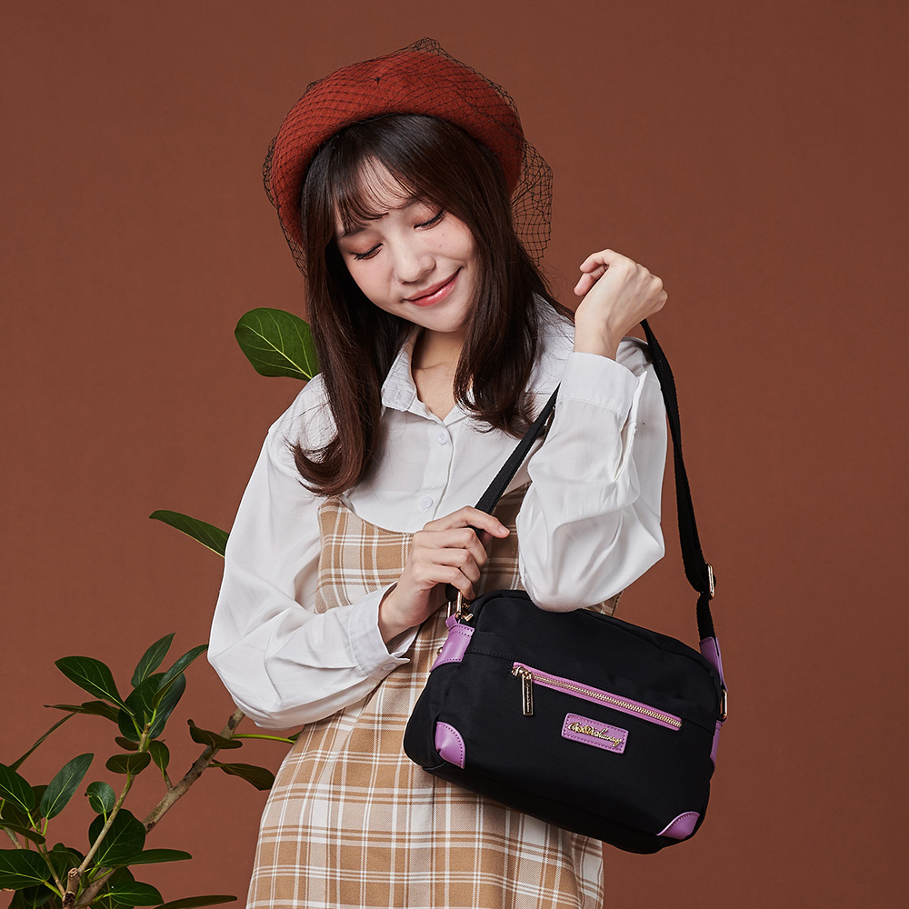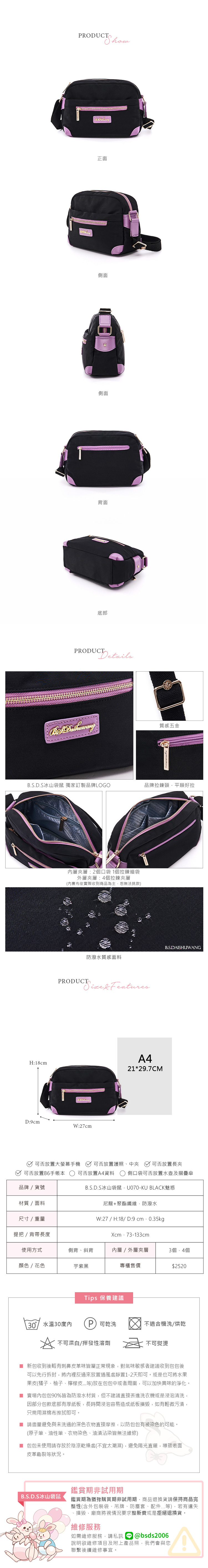 B.S.D.S冰山袋鼠 - BLACK魅惑 - 典雅拼接圓角造型斜背包 - 芋紫黑【U070-KU】