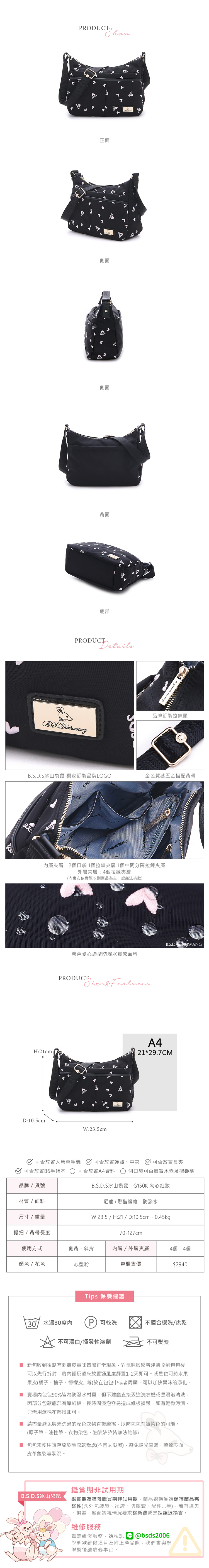 B.S.D.S冰山袋鼠 - 勾心紅妝 - 甜美刺繡休閒輕量斜背包 - 心型粉【G150K】